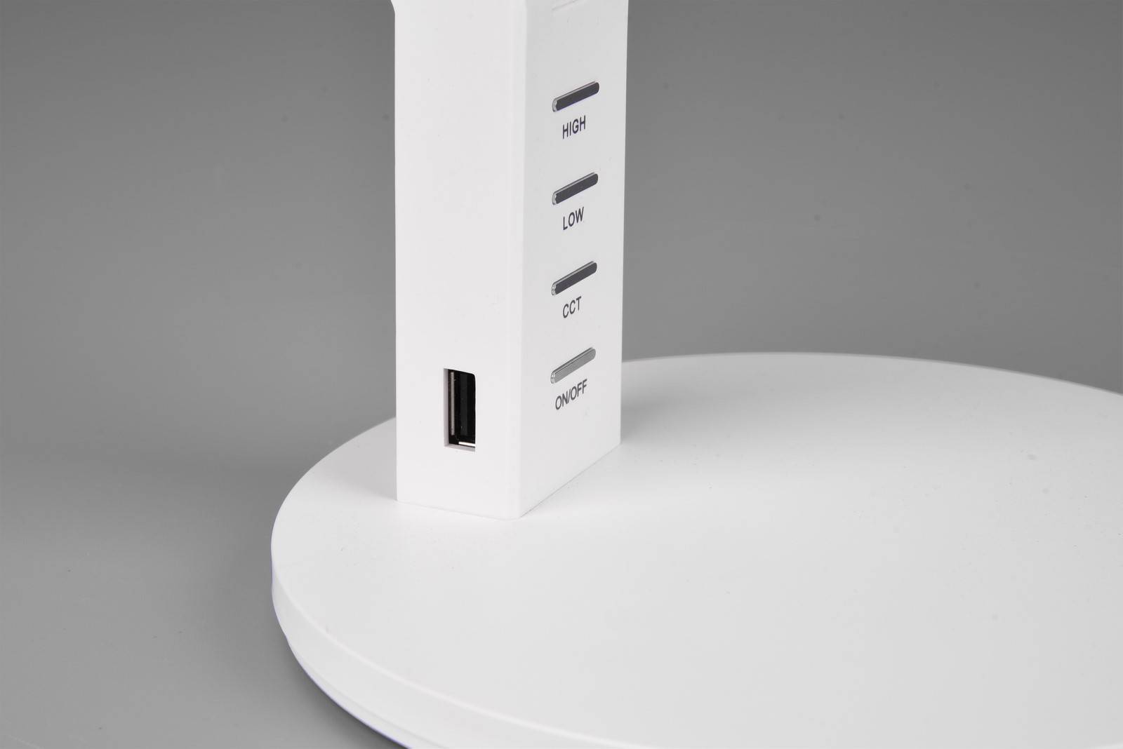Lampa biurkowa biała AVA 523090131 TRIO ze złączem USB funkcją ładowania