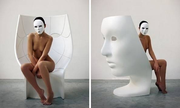 Fotel NEMO FACE CHAIR to nowoczesny fotel uformowany na kształt klasycznej maski teatralnej używanej w starożytnej Grecji.