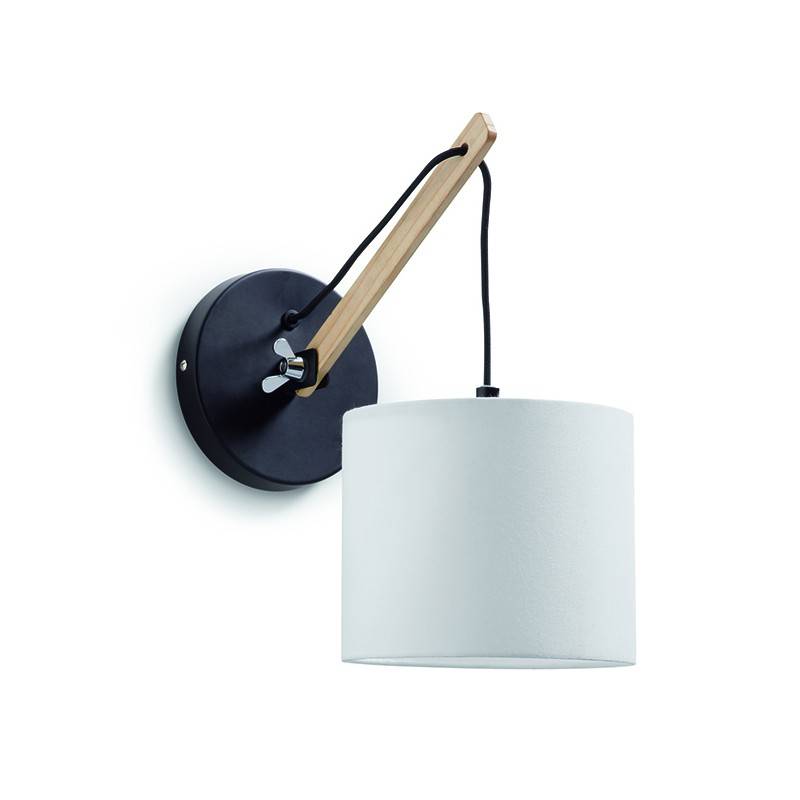 Kinkiet należący do rodziny gustownych lamp o nazwie Britta zaprojktowała marka Exo. Wyprodukowano go z wysokiej klasy materiałów. Lampa składa się z czarnej, stalowej puszki montażowej, ramienia wykonanego z drewna dębowego oraz bawełnianego abażura. Abażur ten wliczony jest w cenę i dostarczany do klienta wraz z lampą. Finezyjne oświetlenie ścienne skrywa we wnętrzu miejsce na żarówkę z pasującym gwintem E14.