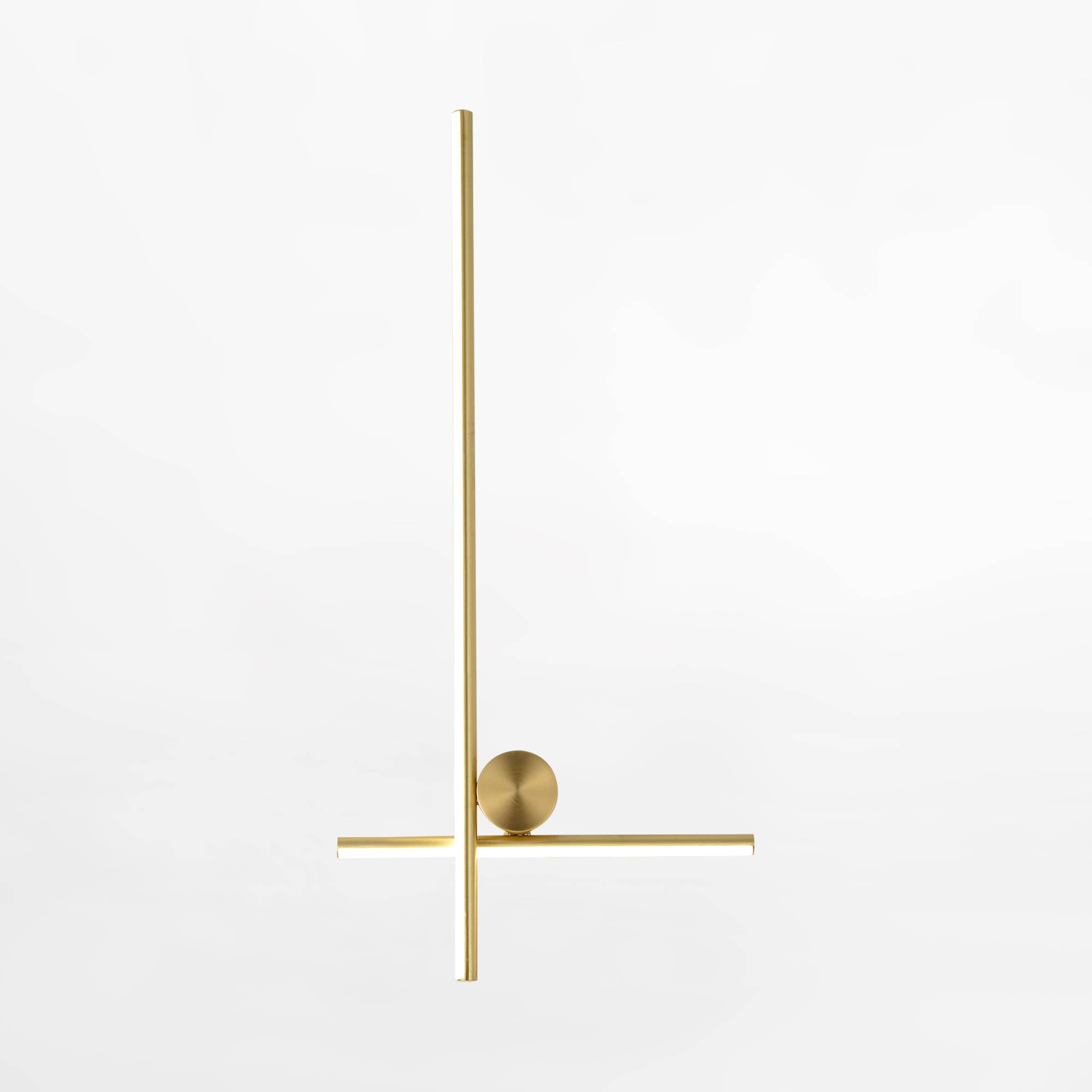 Kinkiet MILL W4101-GD marki ZUMA LINE to wyjątkowe połączenie artystycznej formy i funkcjonalnego oświetlenia, które zostało stworzone z myślą o najbardziej wymagających miłośnikach designu. Jego projekt opiera się na idei czystej geometrii – smukłe linie w perfekcyjnym prostopadłym układzie tworzą minimalistyczną, wręcz architektoniczną kompozycję. Delikatny, pionowy profil przecina subtelna linia pozioma, a ich punkt styku zdobi perfekcyjnie wykończona, złota kula o satynowej powierzchni, pełniąca rolę biżuteryjnego akcentu.
