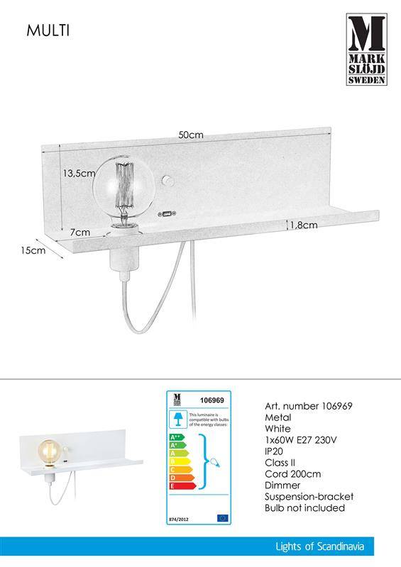 Dostępna w dwóch klasycznych kolorach - czarnym i białym oprawa ścienna Multi, to idealna propozycja dla fanek amatorskiego gotowania z internetowymi tutorialami lub osób, które poszukują lampki nocnej i stolika w jednym. Nie tylko doskonale oświetli kuchenny blat, ale dodatkowo możemy na niej postawić, a nawet naładować telefon lub tablet, na którym oglądamy filmiki kulinarne, nasz ulubiony teledysk lub rozmawiamy ze znajomymi. Kinkiety Multi posiadają możliwość zastosowania energooszczędnej żarówki typu LED i są objęte dwuletnią gwarancją renomowanej firmy Markslojd.
