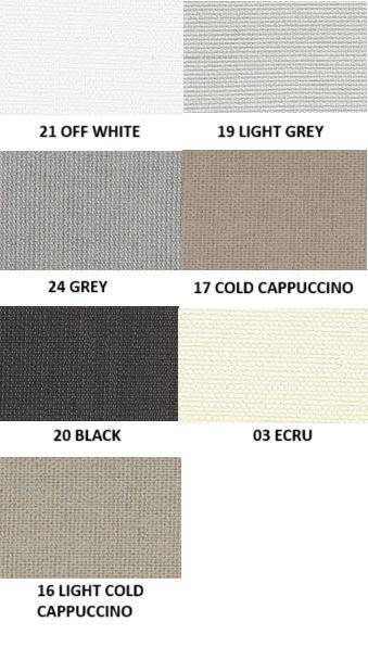 • abażur: 21 OFF WHITE, 19 LIGHT GREY, 24 GREY, 17 COLD CAPPUCCINO, 20 BLACK, 03 ECRU, 16 LIGHT COLD CAPPUCCINO