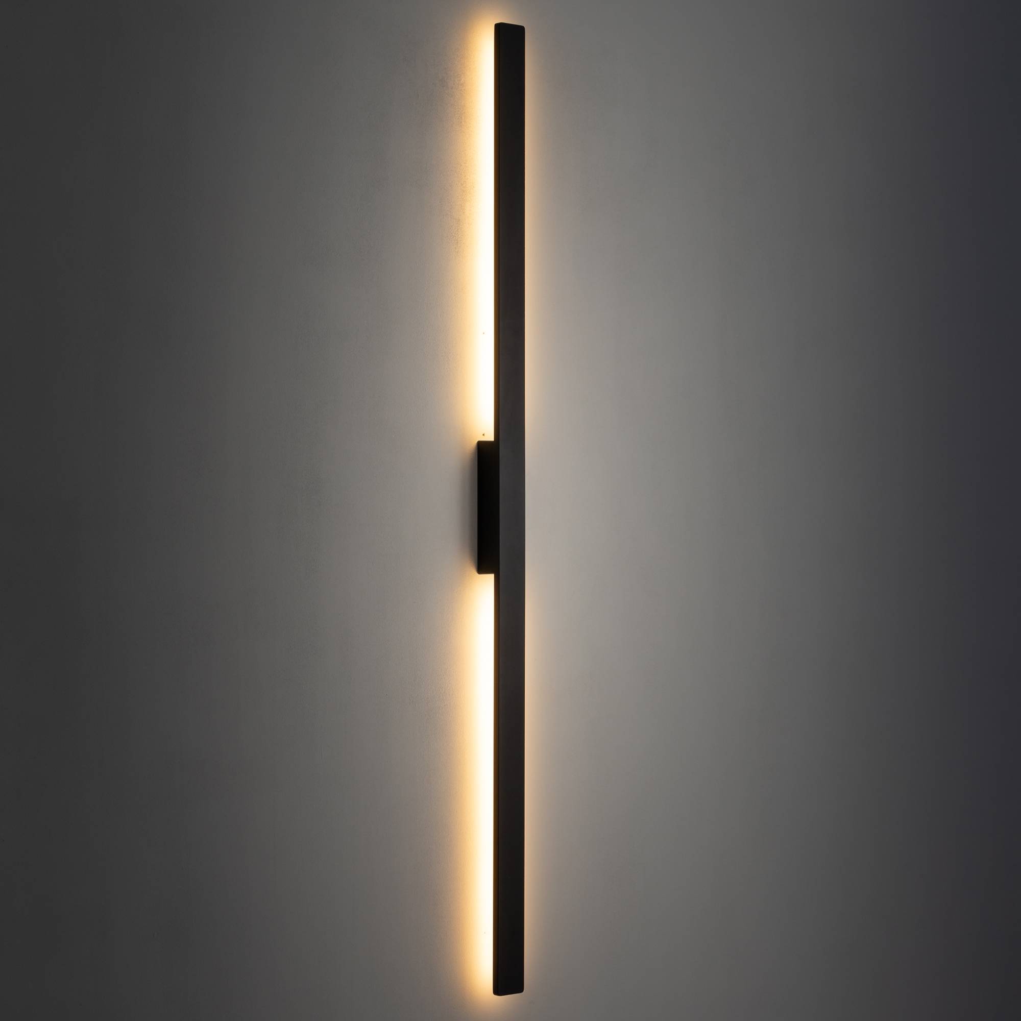 Światło wydobywa się równomiernie z obu stron listwy, tworząc elegancką aurę poświaty, która nadaje ścianie wrażenie głębi i struktury. Dzięki takiemu rozwiązaniu, kinkiet zapewnia przyjemne, nieinwazyjne oświetlenie, które doskonale sprawdza się jako światło pośrednie, nastrojowe, a także jako dopełnienie kompozycji świetlnej w pomieszczeniu. Można go montować pojedynczo jako dyskretny akcent lub zestawiać w kompozycje modułowe, tworząc rytmiczne aranżacje świetlne o architektonicznym charakterze.