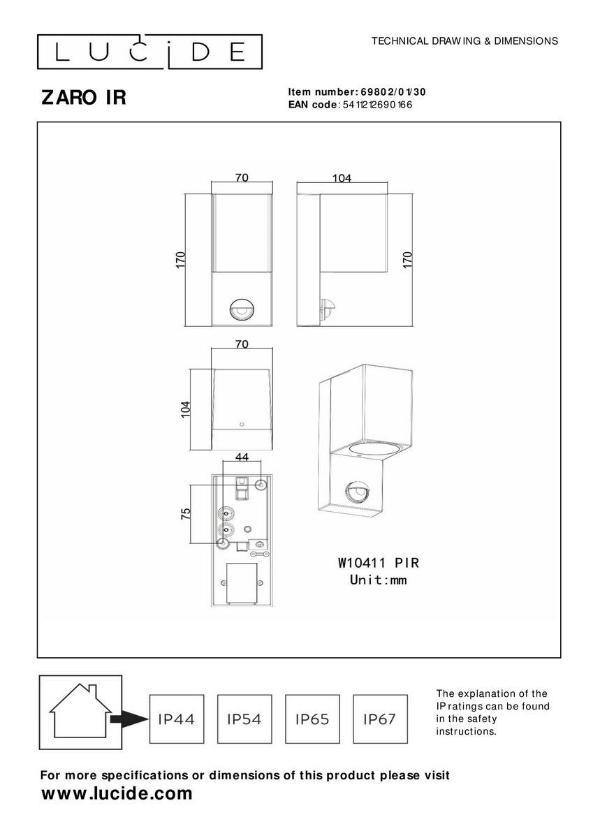 Kinkiet zewnętrzny ZARO 69802/01/30 oprawa w kolorze czarnym LUCIDE