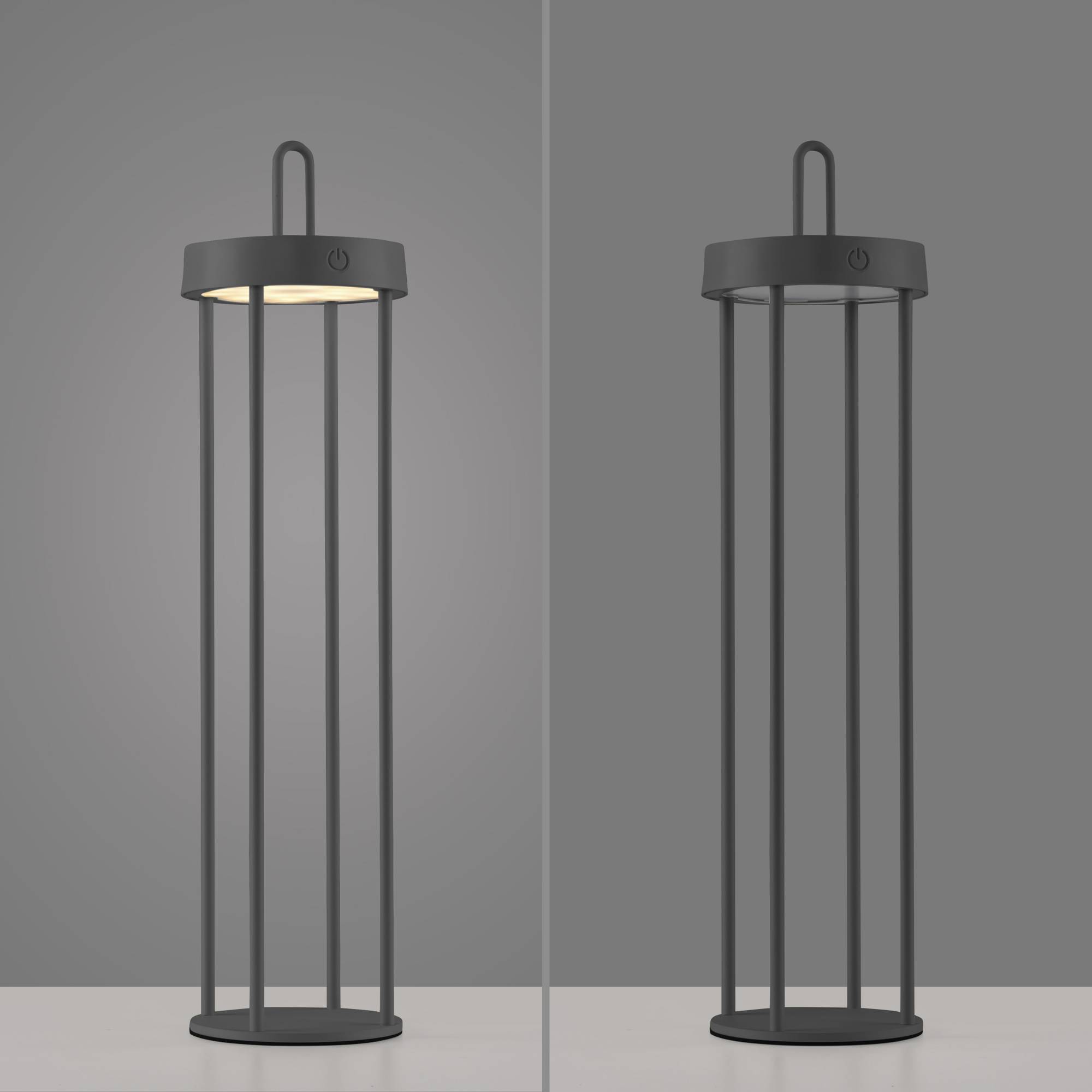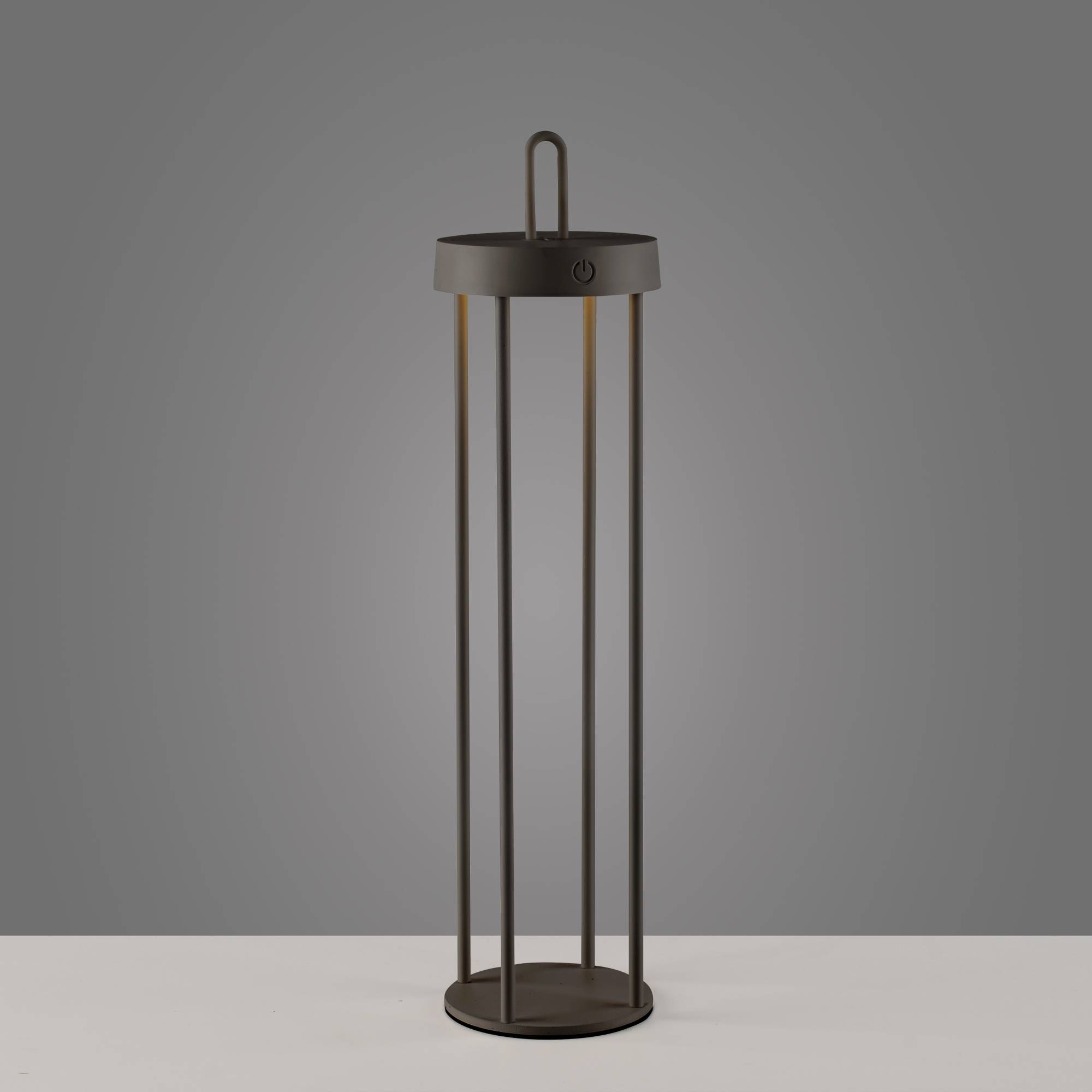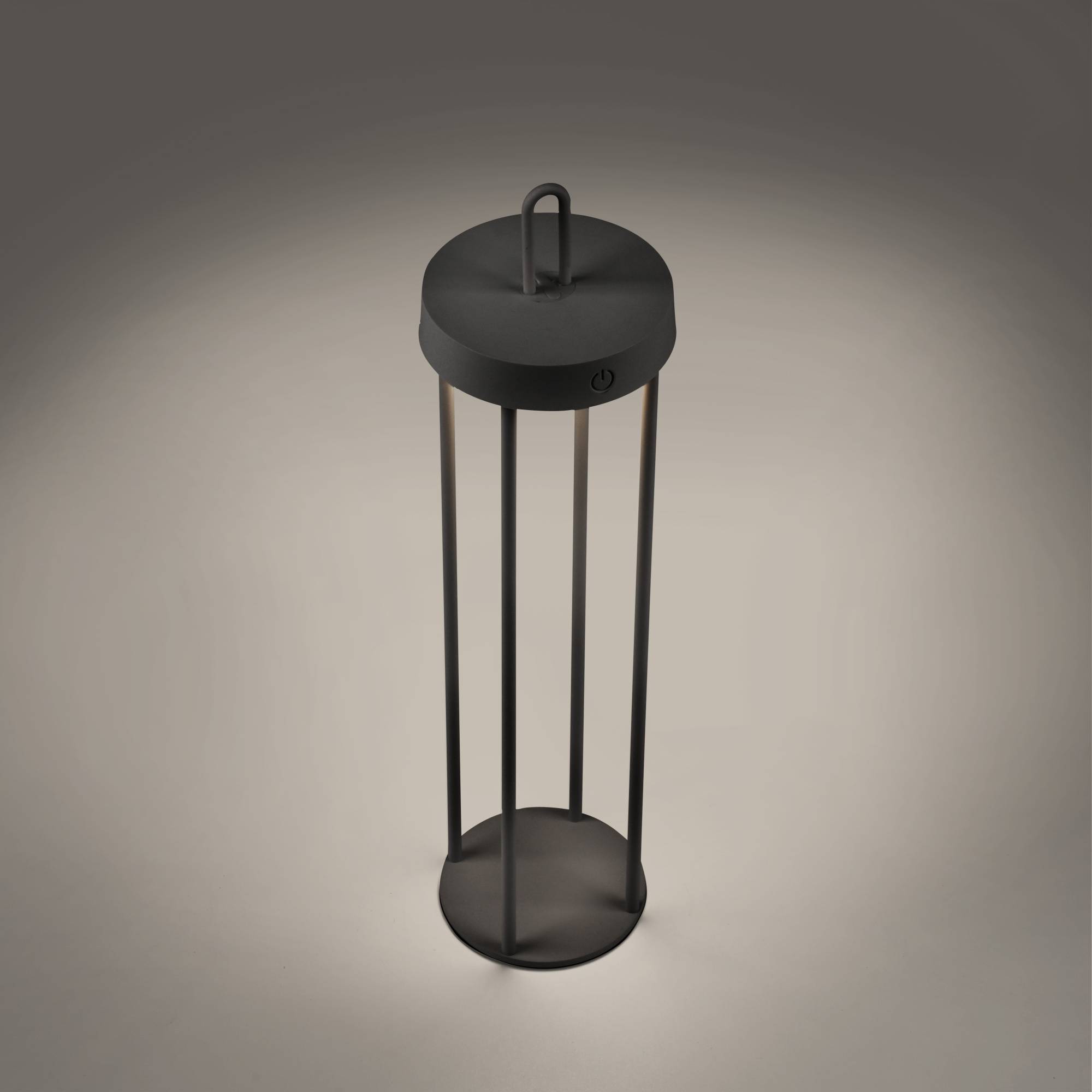 Na szczycie lampy znajduje się praktyczny uchwyt oraz dyskretny włącznik, dzięki czemu ANSELM jest niezwykle łatwa w przenoszeniu i obsłudze. Wbudowane źródło światła LED emituje delikatny, przyjemny blask skierowany ku dołowi, idealny do stworzenia nastrojowej atmosfery podczas wieczornych spotkań, relaksu w ogrodzie, na tarasie czy w salonie. Dzięki zasilaniu akumulatorowemu można z niej korzystać bez konieczności podłączania przewodów, co daje pełną swobodę aranżacyjną.