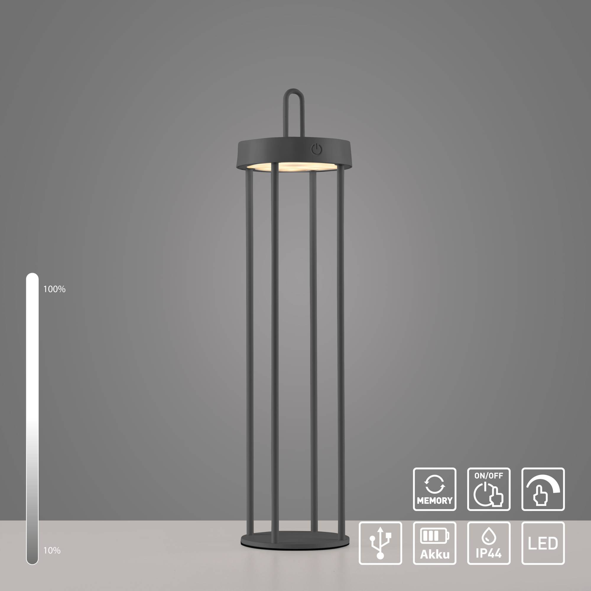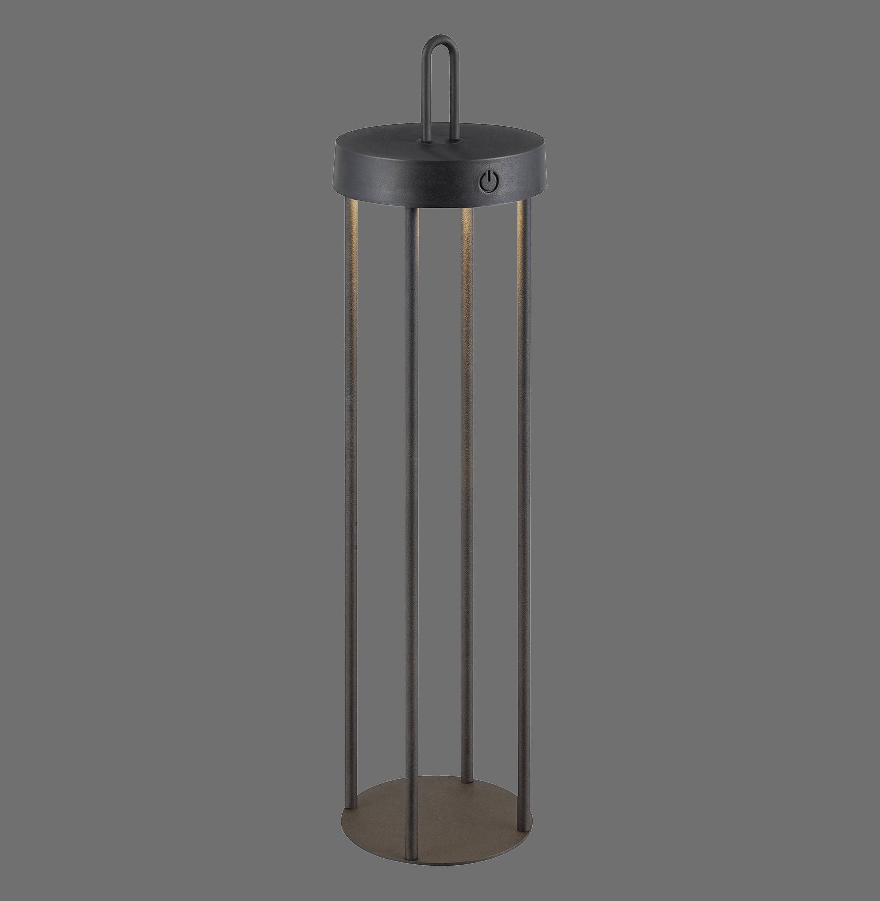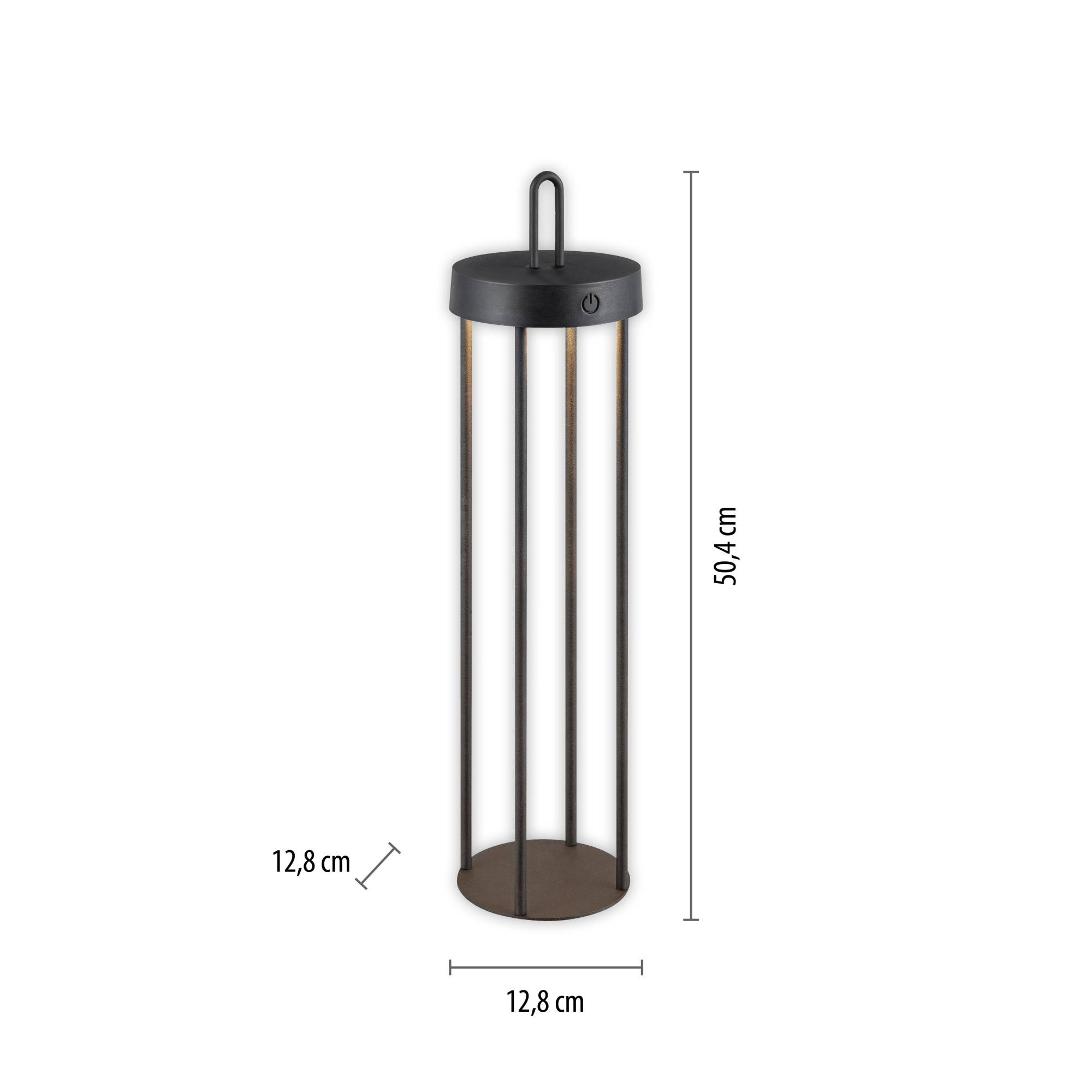 Na szczycie lampy znajduje się praktyczny uchwyt oraz dyskretny włącznik, dzięki czemu ANSELM jest niezwykle łatwa w przenoszeniu i obsłudze. Wbudowane źródło światła LED emituje delikatny, przyjemny blask skierowany ku dołowi, idealny do stworzenia nastrojowej atmosfery podczas wieczornych spotkań, relaksu w ogrodzie, na tarasie czy w salonie. Dzięki zasilaniu akumulatorowemu można z niej korzystać bez konieczności podłączania przewodów, co daje pełną swobodę aranżacyjną.