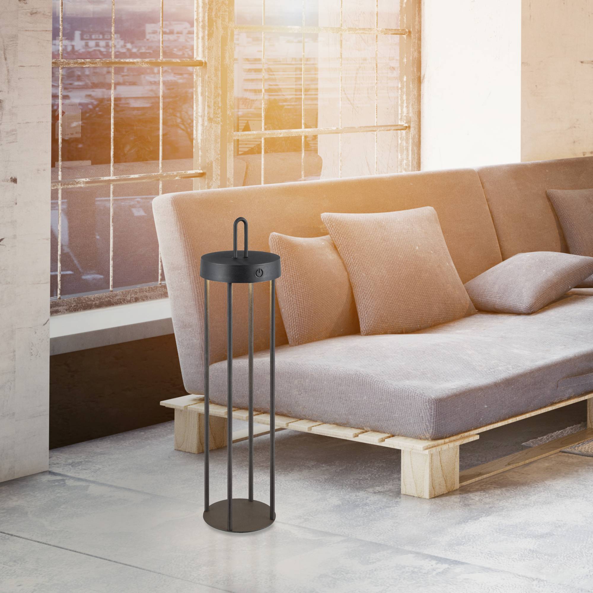 Lampa stołowa bezprzewodowa ANSELM 19301-18 ZUMA LINE by Paul Neuhaus to wyjątkowe połączenie minimalistycznego designu, nowoczesnej technologii i mobilnej wygody, które sprawia, że oświetlenie staje się zarówno funkcjonalne, jak i dekoracyjne. Jej smukła, cylindryczna forma oparta jest na czterech wąskich, metalowych prętach, które tworzą otwartą konstrukcję, nadając lampie lekkości i industrialnego charakteru. Całość utrzymana jest w eleganckiej czerni, co dodaje projektowi uniwersalności i ponadczasowej klasy.
