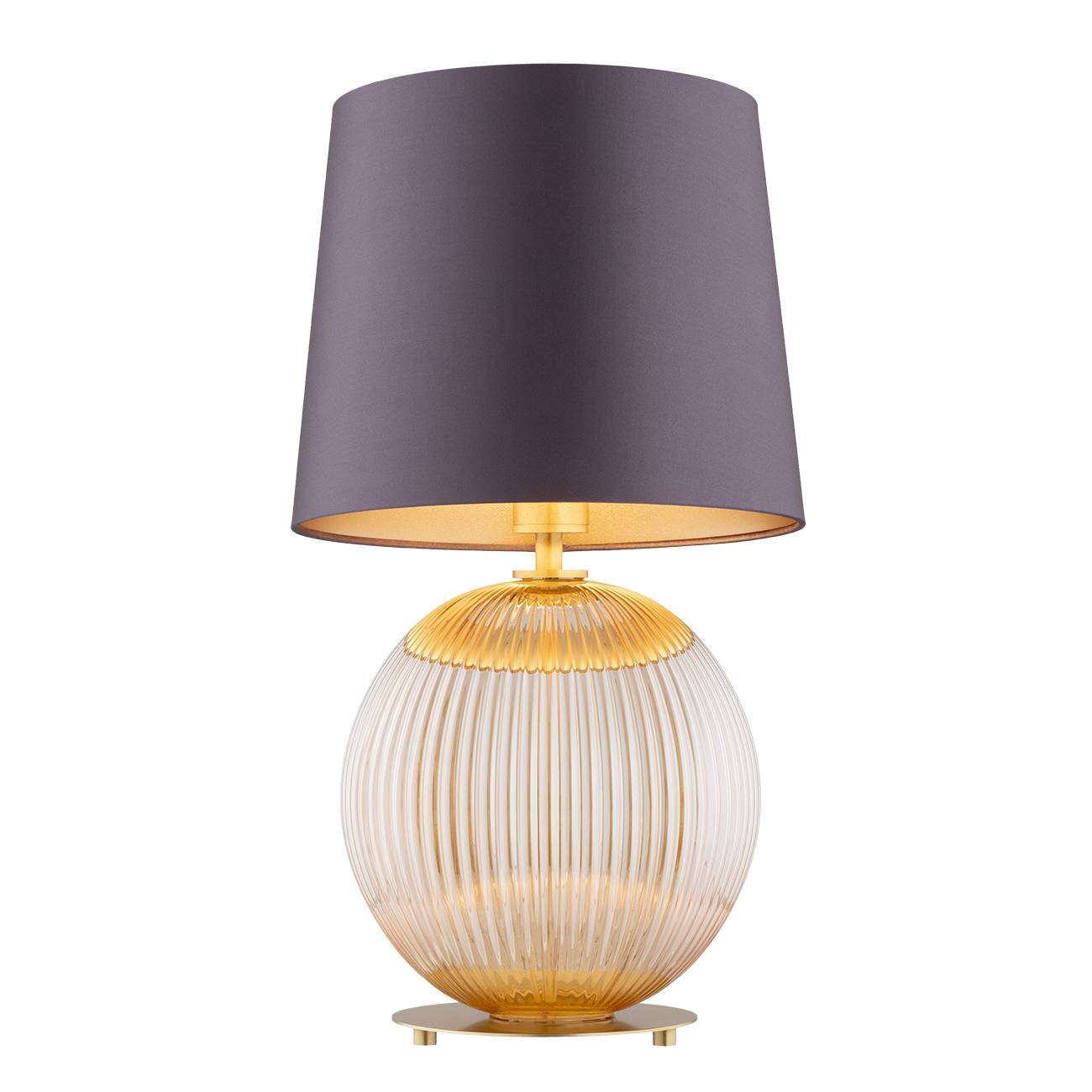 Lampa stołowa HAMILTON 8537 oprawa w kolorze miodowego szkła z mosiężnymi elementami i śliwkowym abażurem ARGON