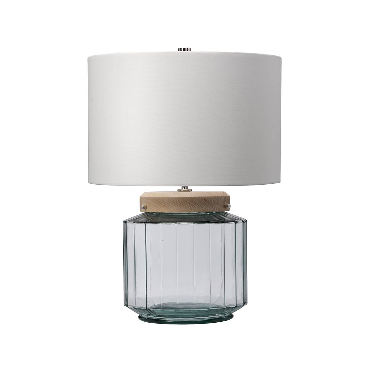 Lampa stołowa LUGA LUGA-TL-NATURAL od Elstead Lighting to eleganckie połączenie szklanej oprawy z elementami drewna i białym abażurem. Idealny wybór do nowoczesnych i klasycznych wnętrz, oferujący ciepłe, przytulne oświetlenie i stylowy akcent dekoracyjny.