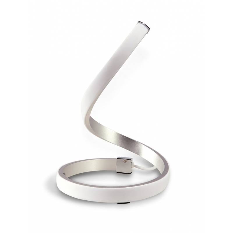 Lampa stołowa Nur 4986 jest minimalistyczną oprawą o prostej budowie stworzonej w formie spirali w kolorze chromu, którą wyposażono w diody LED o łącznej mocy 15W skryte za białym dyfuzorem. Oprawa generuje jasne światło dzięki czemu idealnie sprawdzi się w pomieszczeniach takich jak np. salon czy też jadalnia o nowoczesnym wystroju oraz jako uzupełnienie wnętrz oświetlanych lampami z tej rodziny.