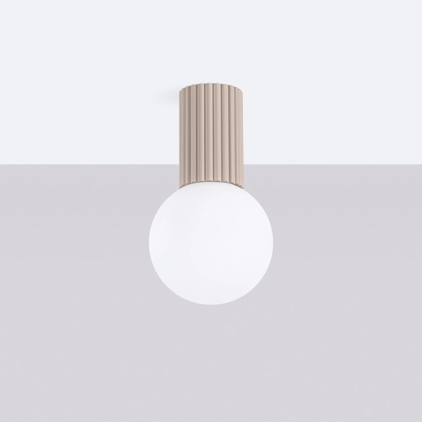 Lampa sufitowa HALO marki Sollux Lighting to nowoczesna propozycja oświetlenia sufitowego, która łączy minimalistyczny design z wysoką funkcjonalnością i odpornością na wilgoć. Dzięki swojemu uniwersalnemu wyglądowi oraz zwiększonej klasie szczelności (IP44), idealnie nadaje się do wnętrz narażonych na działanie pary wodnej i wilgoci – takich jak łazienki, toalety czy kuchnie – a jednocześnie znakomicie sprawdzi się także w sypialniach, korytarzach i garderobach. Konstrukcja lampy opiera się na dwóch kontrastujących, ale harmonijnie współgrających elementach. Pierwszym z nich jest pionowy korpus wykonany z wysokiej jakości aluminium, uformowany w formę pionowych żłobień – nie tylko estetycznych, ale również praktycznych, ponieważ zwiększają one powierzchnię odprowadzającą ciepło. Drugi element to mlecznobiały, kulisty klosz wykonany ze szkła, który doskonale rozprasza światło, tworząc jednolitą i łagodną poświatę, idealną do budowania przyjemnej atmosfery w przestrzeni domowej. Oprawa HALO montowana jest natynkowo, co oznacza, że nie wymaga ingerencji w sufit podwieszany czy ścianę. Jej kompaktowa forma sprawia, że świetnie wpisuje się w aranżacje, gdzie istotna jest oszczędność miejsca i czystość linii stylistycznej. Ze względu na różnorodną kolorystykę z łatwością dopasuje się w wiele wnętrz w stylu skandynawskim, minimalistycznym, japandi czy klasycznym. Zastosowanie klasy ochrony IP44 oznacza, że oprawa jest odporna na wnikanie ciał stałych większych niż 1 mm oraz chroniona przed bryzgami wody z dowolnego kierunku, co znacząco zwiększa jej bezpieczeństwo użytkowania w trudniejszych warunkach. To czyni z niej nie tylko atrakcyjny, ale przede wszystkim praktyczny wybór do miejsc, w których oświetlenie musi być zarówno stylowe, jak i wytrzymałe. Lampa sufitowa HALO to esencja prostoty, elegancji i technicznej precyzji, stworzona z myślą o użytkownikach, którzy cenią dopracowane detale, komfort wizualny i niezawodność w codziennym użytkowaniu. To wybór świadomy i funkcjonalny – idealny dla miłośników subtelnego, ale wyrazistego oświetlenia.