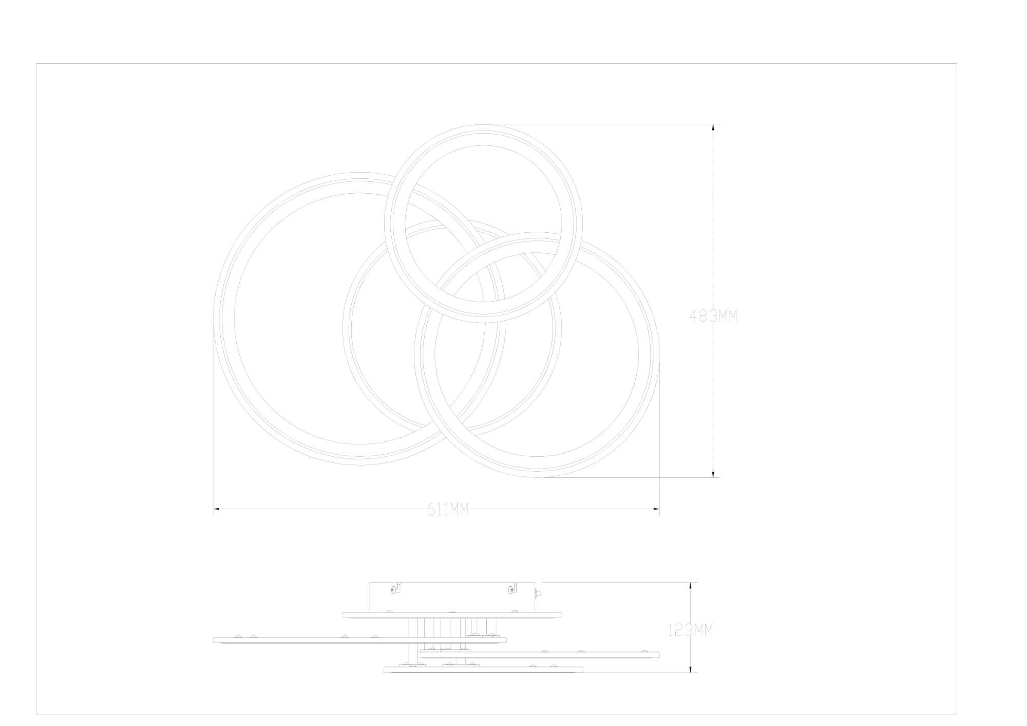 Oprawa została wykończona w głębokim, eleganckim czarnym kolorze, który stanowi doskonały kontrast dla delikatnego, mlecznobiałego dyfuzora LED oplatającego każdy pierścień. Taka kompozycja nie tylko podkreśla geometrię konstrukcji, ale też zapewnia przyjemne, rozproszone światło – idealne do codziennego użytkowania, bez efektu rażenia oczu. Lampa generuje miękkie, ale wystarczająco intensywne oświetlenie, które z powodzeniem wypełnia przestrzeń zarówno dużego salonu, jak i minimalistycznej jadalni czy sypialni w stylu modern glam.
