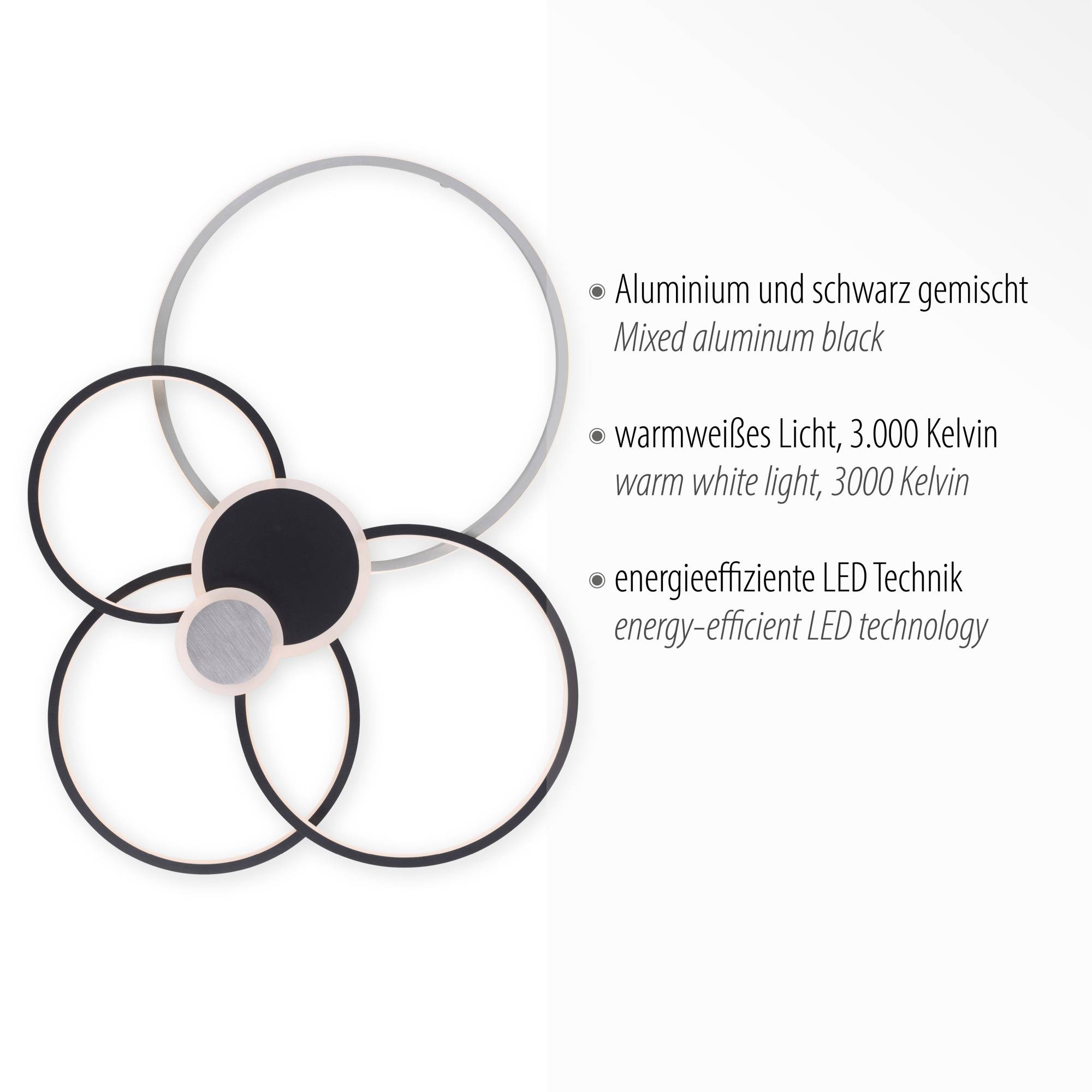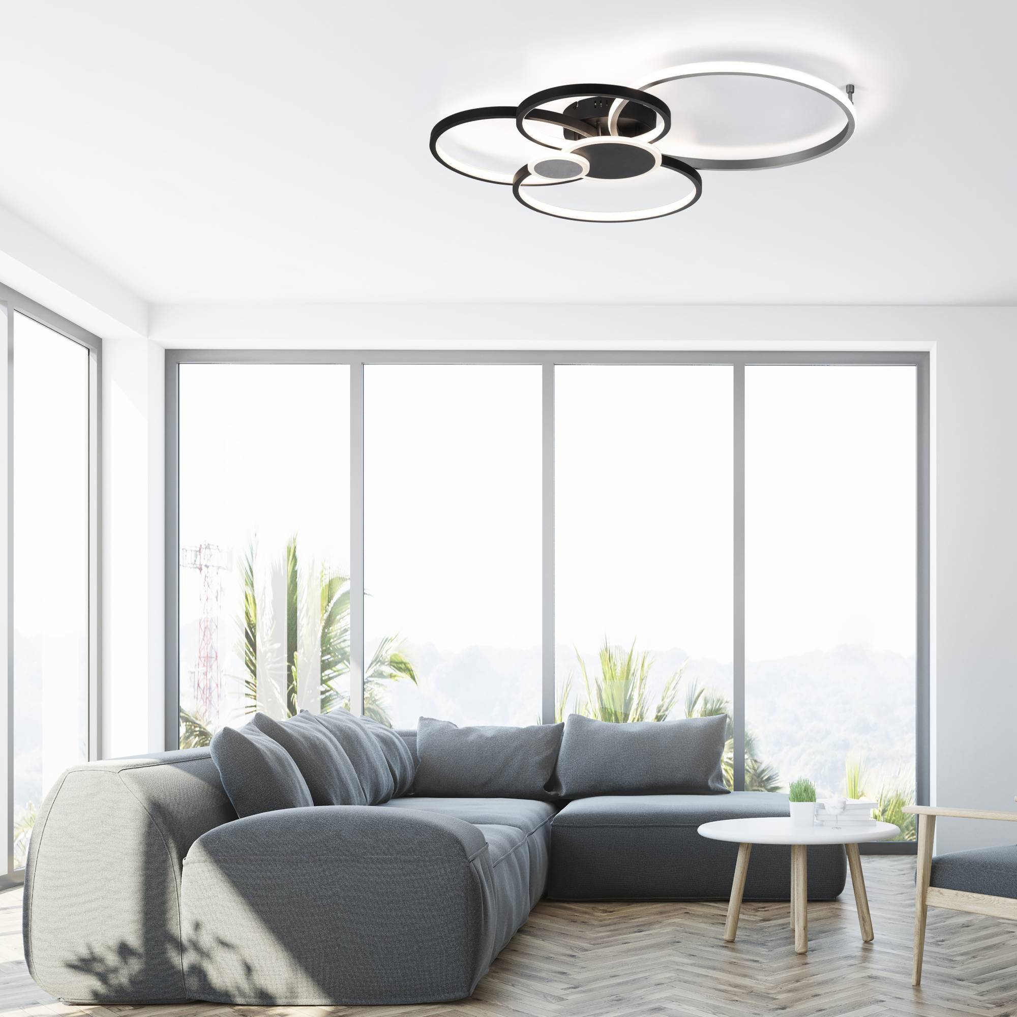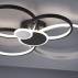 Lampa sufitowa PAPILON 14549-18 ZUMA LINE by Paul Neuhaus to designerska propozycja, która łączy w sobie nowoczesną formę, asymetrię i efektowne oświetlenie LED. Jej konstrukcja składa się z kilku połączonych ze sobą, różnej wielkości pierścieni, które tworzą intrygującą kompozycję przestrzenną – niczym dynamiczny układ planet albo nowoczesna rzeźba świetlna zawieszona pod sufitem.