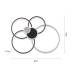 Oprawa w eleganckim, czarnym kolorze, połączona z jasnymi, mlecznymi dyfuzorami, nadaje całości wyrazistego, kontrastowego charakteru. Światło LED rozchodzi się równomiernie po całym obwodzie pierścieni, tworząc przyjemny, rozproszony blask, który nie oślepia, a jednocześnie doskonale doświetla wnętrze. Ten efekt sprawia, że lampa jest zarówno praktycznym źródłem światła, jak i dekoracyjnym elementem wnętrza.