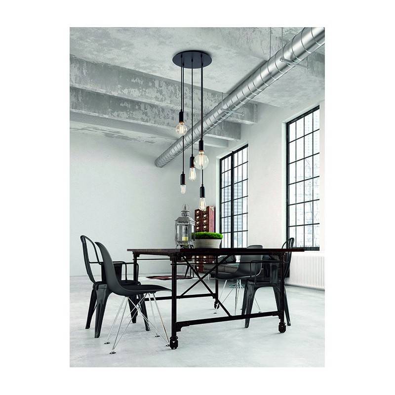Designerska lampa wisząca kryje w sobie sekret wyjątkowości - jest nim prostota i oszczędność w formie. Złożona została z pokaźnej podsufitki o okrągłym kształcie, pięciu wychodzących od niej sznurków oraz żarówek zwieńczających całość. Najważniejsze elementy - serce lampy jakimi są żarówki E27 możemy nabyć w kilku różnych kształtach. Dzięki temu zabiegowi uzyskamy niepowtarzalny, zadowalający nas efekt. A Tu Estilo - bo tak nazywa się lampa występuje w trzech kolorach. Do wyboru mamy czerń, biel a także chromowaną podsufitkę z szarymi sznurkami.