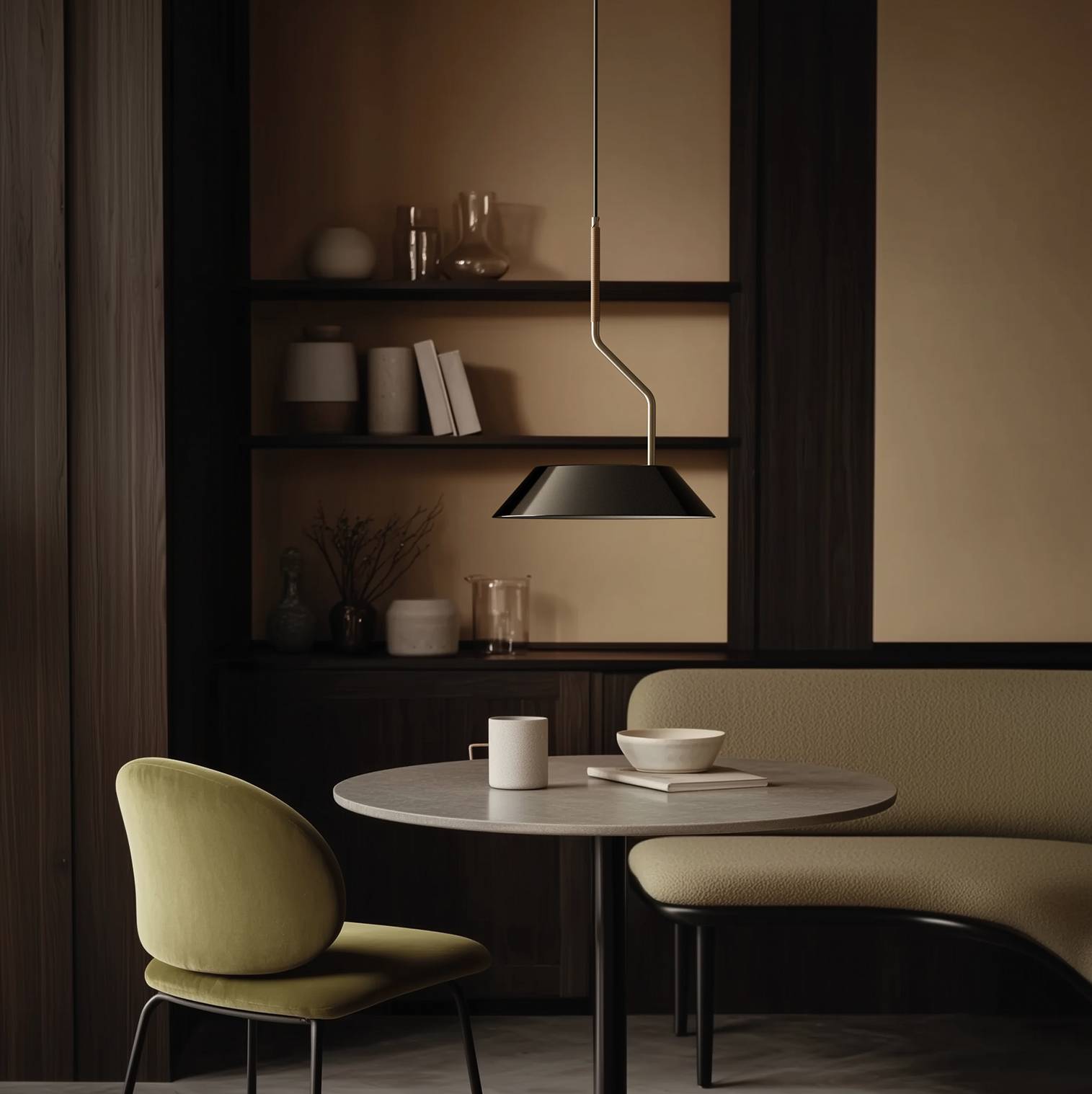Lampa wisząca AIDER marki Aromas to wyrafinowana interpretacja nowoczesnego minimalizmu, w której każdy element konstrukcji został zaprojektowany z precyzją i wyczuciem proporcji. To model, który przyciąga uwagę nie poprzez nadmiar formy, lecz poprzez subtelne detale i świadome operowanie linią oraz geometrią. Już na pierwszy rzut oka uwagę zwraca smukła, pionowa kompozycja, w której kluczową rolę odgrywa delikatnie załamany trzon. To właśnie ten element nadaje lampie charakteru i odróżnia ją od klasycznych, prostych form. Linia nie jest tu przypadkowa – została zaprojektowana tak, aby wprowadzić do wnętrza lekki ruch i wizualną dynamikę, jednocześnie zachowując elegancki, uporządkowany wygląd. Centralnym punktem konstrukcji jest szeroki, płaski klosz o wyraźnie zarysowanej, geometrycznej formie. Jego kształt pozwala na efektywne rozproszenie światła w dół, co czyni lampę doskonałym wyborem nad stół, wyspę kuchenną lub jako główne oświetlenie strefy dziennej. Światło jest skupione i funkcjonalne, a jednocześnie na tyle miękkie, by budować przyjemną atmosferę we wnętrzu. Interesującym detalem jest fragment trzonu wykończony materiałem o subtelnej strukturze, który wprowadza do projektu element kontrastu i przełamuje jego techniczny charakter. Ten akcent sprawia, że lampa zyskuje bardziej przytulny, niemal rzemieślniczy wymiar, co doskonale wpisuje się w aktualne trendy łączenia nowoczesności z naturalnymi inspiracjami. Zawieszenie lampy zostało zaprojektowane w sposób minimalistyczny i dyskretny, dzięki czemu całość sprawia wrażenie lekkiej i niemal zawieszonej w przestrzeni. Prosta forma podsufitki oraz przewodu nie odciąga uwagi od głównej bryły, lecz stanowi jej naturalne uzupełnienie. AIDER doskonale odnajdzie się w nowoczesnych aranżacjach, wnętrzach typu loft, jak również w bardziej klasycznych przestrzeniach, gdzie stanie się wyrazistym, designerskim akcentem. Świetnie prezentuje się zarówno jako pojedynczy punkt świetlny, jak i w kompozycjach wielopunktowych, gdzie może tworzyć spójną, elegancką instalację świetlną. To lampa, która łączy funkcjonalność z wyrafinowaną estetyką. Zapewnia komfortowe oświetlenie użytkowe, a jednocześnie stanowi element dekoracyjny, który podkreśla charakter wnętrza. Aromas po raz kolejny udowadnia, że dobrze zaprojektowana forma nie potrzebuje zbędnych dodatków – wystarczy proporcja, detal i odrobina odwagi w projektowaniu. AIDER to propozycja dla osób, które cenią świadomy design, wysoką jakość wykonania i ponadczasową elegancję. To oświetlenie, które nie tylko spełnia swoją funkcję, ale również buduje atmosferę i nadaje przestrzeni indywidualny charakter.