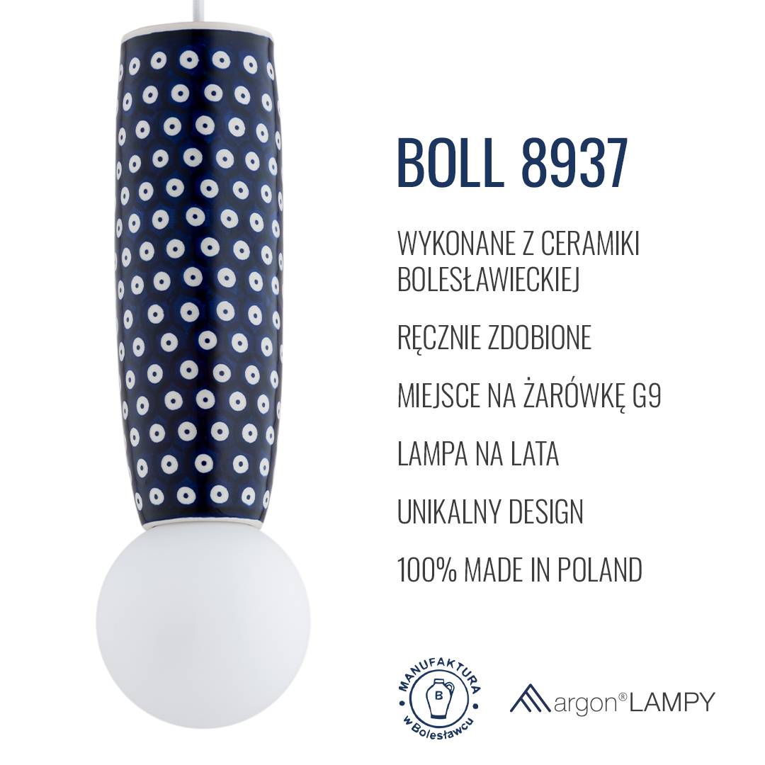 Lampa wisząca BOLL 8937 oprawa w kolorze kobaltowym z białymi elementami ARGON x Manufaktura Bolesławiec