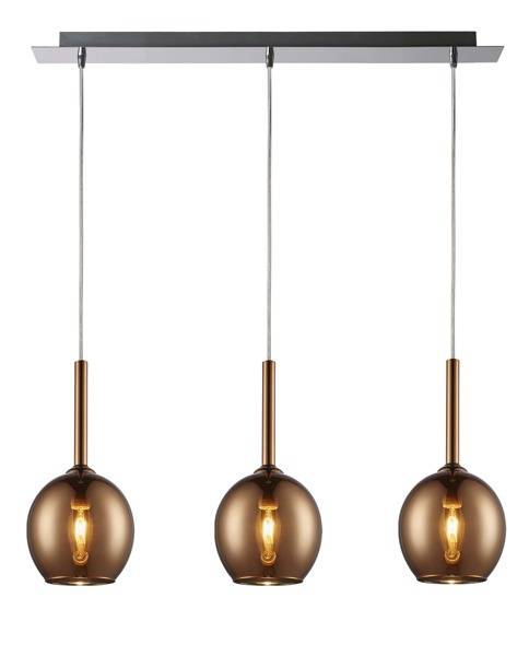 Lampa wisząca MONIC to połączenie nowoczesności z elegancją. Idealnie sprawdzi się jako dodatkowe źródło światła nad stołem w jadalni lub centralne oświetlenie w salonie, sypialni czy w biurze. Lampa posiada trzy źródła światła dostosowane do żarówki E14. Możliwość regulacji wysokośći pozwala na dostosowanie lampy do wielu wnętrz i własnych potrzeb, a jej maksymalna wysokość wynosi 120cm. Srebrna oprawa połączona z okrągłymi, miedzianymi kloszami wykonanymi ze szkła nadaje elegancji i z pewnością wpasuje się w wiele aranżacji.