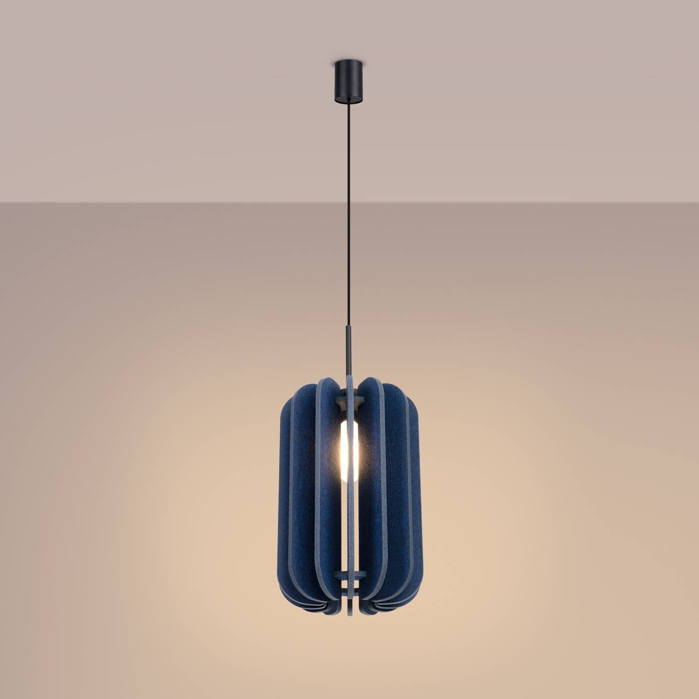 Lampa wisząca MULA marki Sollux Lighting to wyrazisty przykład nowoczesnego wzornictwa, w którym funkcjonalność spotyka się z miękką, przyjazną estetyką materiałów. Konstrukcja oprawy oparta jest na smukłym, czarnym zawieszeniu, które nadaje całości wizualnej lekkości i podkreśla jej współczesny charakter. Minimalistyczna forma przewodu i subtelnej podsufitki sprawia, że lampa doskonale odnajduje się w nowoczesnych aranżacjach, nie przytłaczając przestrzeni, a jednocześnie jasno zaznaczając swoją obecność. Centralnym elementem lampy MULA jest oryginalny abażur wykonany z filcu, uformowany z pionowych, delikatnie zaokrąglonych segmentów. Taka konstrukcja tworzy przestrzenną, miękką bryłę, która przyciąga wzrok i wyróżnia się na tle klasycznych, gładkich kloszy. Filcowy materiał nadaje oprawie wyjątkowego charakteru, wprowadzając do wnętrza ciepło, naturalność i przytulność. Jednocześnie abażur skutecznie rozprasza światło, dzięki czemu oświetlenie jest łagodne, nienachalne i sprzyjające relaksowi. Połączenie filcu ze stalowymi elementami tworzy harmonijny kontrast, który doskonale wpisuje się w stylistykę nowoczesną, skandynawską oraz japandi. Lampa MULA sprawdzi się idealnie nad stołem w jadalni, nad wyspą kuchenną, w salonie czy w sypialni, gdzie stanie się nie tylko źródłem światła, ale również dekoracyjnym akcentem budującym atmosferę wnętrza. Jej forma pozwala na zastosowanie zarówno pojedynczo, jak i w kompozycji kilku lamp zawieszonych w jednej linii lub na różnych wysokościach. Światło emitowane przez lampę jest miękkie i przyjemne dla oczu, co sprzyja tworzeniu nastrojowych aranżacji. Solidne wykonanie i starannie dobrane materiały gwarantują trwałość oraz estetyczny wygląd oprawy przez długi czas. Lampa wisząca MULA to propozycja dla osób, które poszukują oświetlenia nieoczywistego, łączącego nowoczesny design z miękkością naturalnych materiałów. Jej uniwersalny charakter sprawia, że z łatwością dopasuje się do różnych stylów wnętrzarskich, nadając im indywidualnego wyrazu i przytulnego klimatu, zgodnie z filozofią marki Sollux Lighting, która stawia na funkcjonalność, estetykę i ponadczasowe wzornictwo.