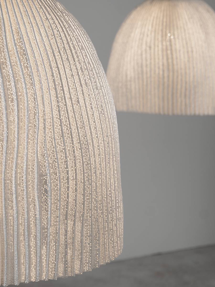 Lampa wisząca Onn to nowoczesne oświetlenie do wnętrz zaprojektowane przez Arturo Alvareza. Opracowany, autorski materiał wykonania, który stanowi połączenie nierdzewnej metalowej siatki i silikonu sprawia, że lampa wisząca Onn i jej oprawa subtelnie pozwala przenikać światłu przez klosz. Dzięki temu, lampa wisząca Onn zapewnia delikatne oświetlenie całego pomieszczenia.