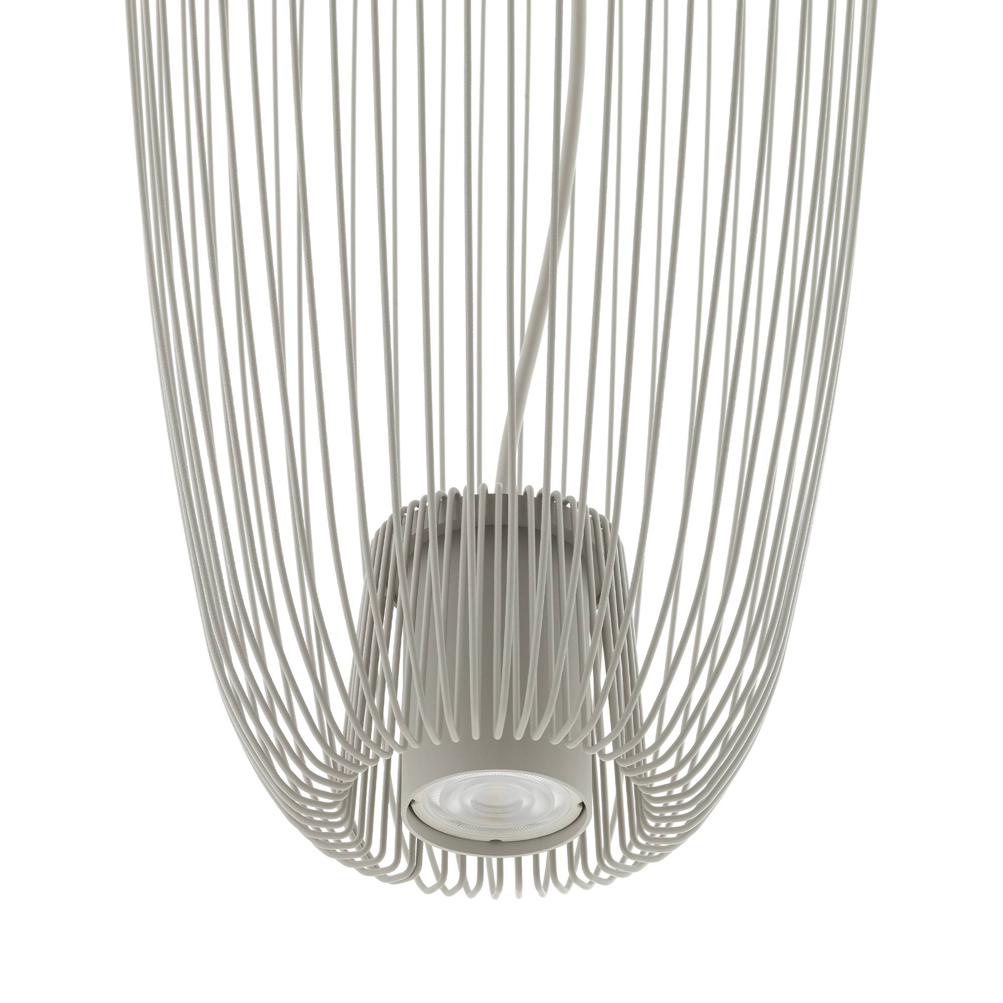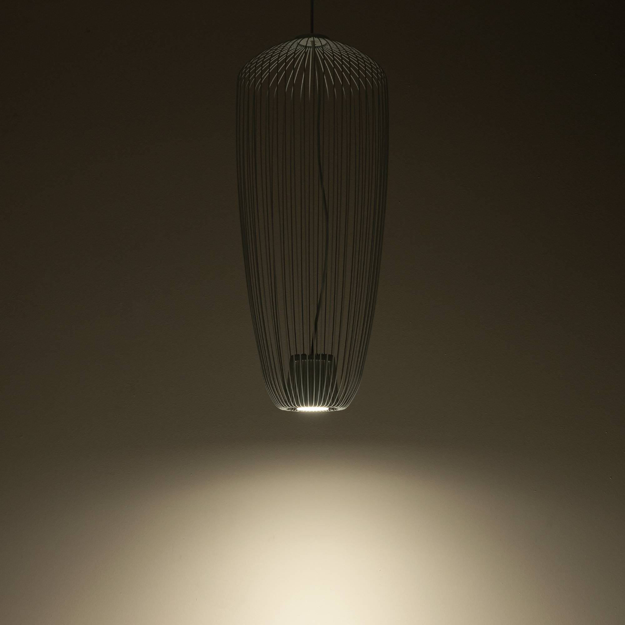 Oprawa zawieszona jest na regulowanym przewodzie, co pozwala na dostosowanie wysokości lampy do indywidualnych potrzeb i charakteru pomieszczenia. Dzięki temu lampa może być zamontowana zarówno nad stołem jadalnym, jak i w centralnym punkcie pokoju, tworząc efektowną ozdobę wnętrza.