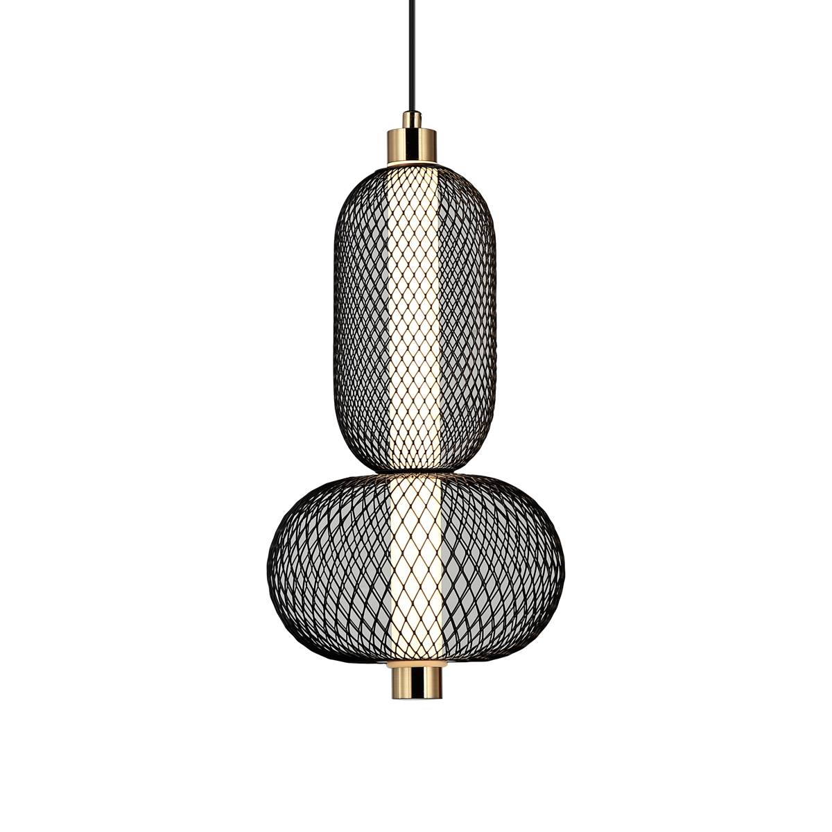 Lampa wisząca Marco marki Italux to propozycja, która zachwyca śmiałą formą, precyzją wykonania i intrygującą stylistyką. To model stworzony z myślą o wnętrzach nowoczesnych, loftowych oraz industrialnych, w których niebanalny design idzie w parze z funkcjonalnością i komfortem użytkowania. Oprawa wyróżnia się efektownym połączeniem czerni i złota, a także oryginalną, modułową konstrukcją z zastosowaniem zintegrowanego źródła światła LED. Centralnym elementem lampy są dwa pionowo ułożone segmenty klosza, uformowane w geometryczne, rytmiczne bryły o zaokrąglonych kształtach, tworzące wyrafinowaną kompozycję. Klosze wykonano z metalowej siatki o drobnym splocie, której czarna powierzchnia tworzy lekko surowy, industrialny efekt, a jednocześnie nadaje całości lekkości i ażurowego charakteru. Złote detale, subtelnie rozmieszczone na zakończeniach oprawy, przełamują monochromatyczną czerń, wnosząc do kompozycji nutę elegancji i ciepła. We wnętrzu siatkowego klosza znajduje się wbudowany moduł LED, który równomiernie rozprowadza światło, tworząc subtelną iluminację i miękki efekt świetlny. Zastosowanie zintegrowanego źródła światła LED przekłada się na wysoką energooszczędność, trwałość oraz brak konieczności częstej wymiany żarówek. Barwa światła 3000K (ciepła biel) idealnie nadaje się do przestrzeni dziennych, jadalni, salonów oraz wnętrz komercyjnych, w których liczy się przyjazna, komfortowa atmosfera. Dzięki swojej formie model doskonale sprawdzi się nad stołem jadalnianym, wyspą kuchenną lub ladą recepcyjną – stanowiąc zarówno praktyczne, jak i dekoracyjne źródło światła. Ta oprawa sufitowa to wyraz designerskiej odwagi i nowoczesnego podejścia do oświetlenia. Marco nie tylko spełnia swoją funkcję użytkową, ale także staje się centralnym punktem aranżacyjnym, który przyciąga wzrok i podkreśla charakter wnętrza. To oświetlenie dla tych, którzy cenią wyraziste formy, ponadczasową kolorystykę i nowoczesną technologię w służbie codziennego komfortu.