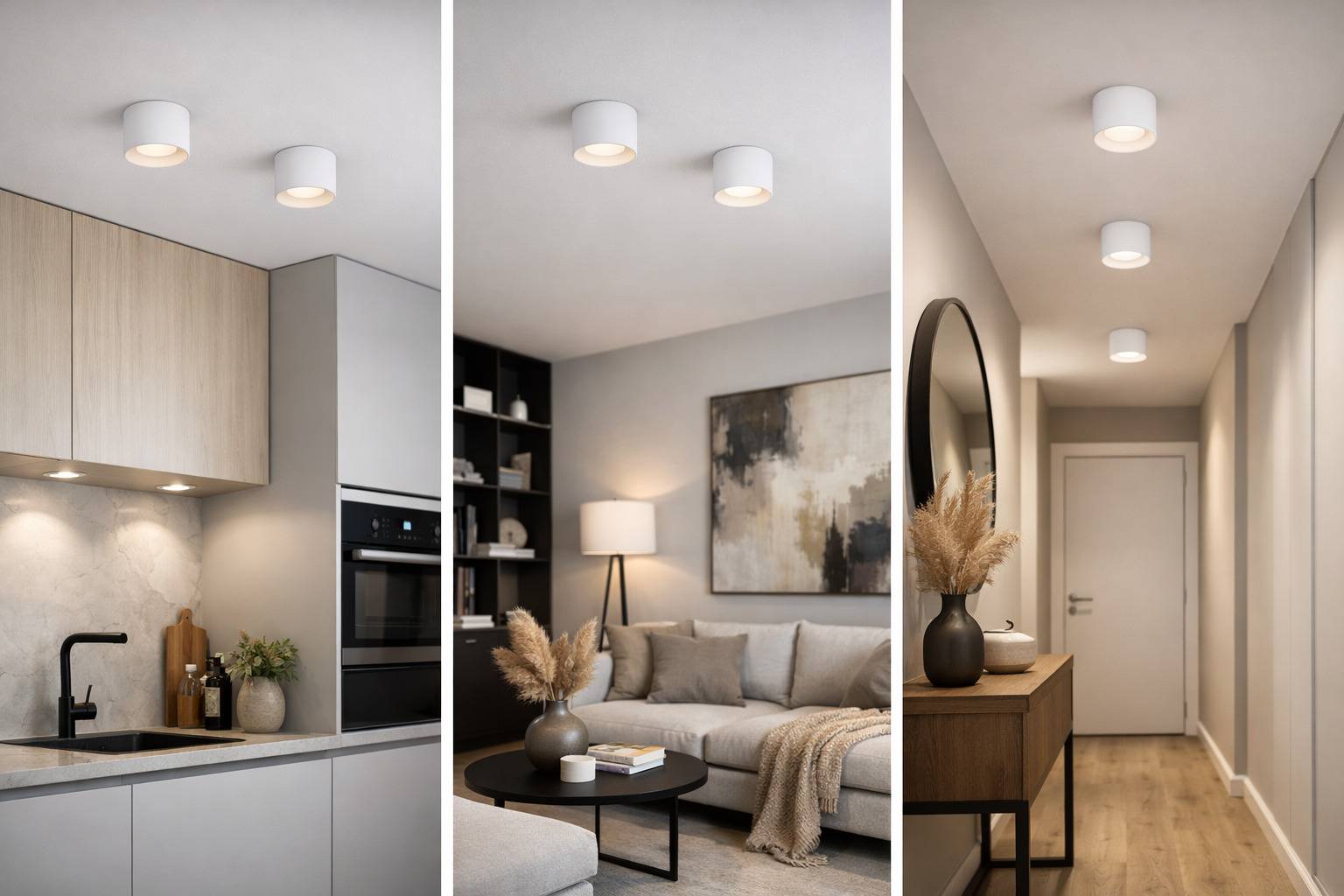 Spoty natynkowe to bardzo uniwersalne źródło światła, które sprawdzi się w salonie, kuchni, sypialni, korytarzu, garderobie czy domowym biurze. Mogą pełnić funkcję zarówno oświetlenia głównego, jak i strefowego – np. nad blatem roboczym lub w ciągach komunikacyjnych.