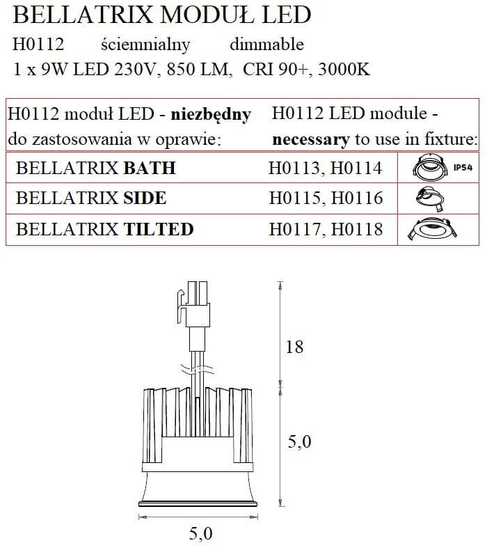 Moduł świetlny LED Bellatrix ściemnialny do opraw podtynkowych Bellatrix H0112 Maxlight
