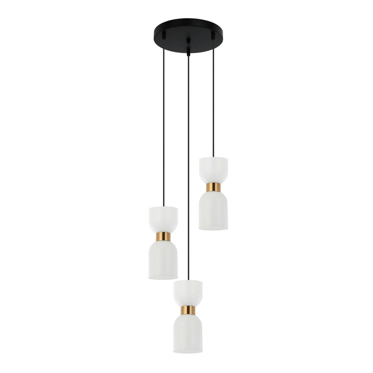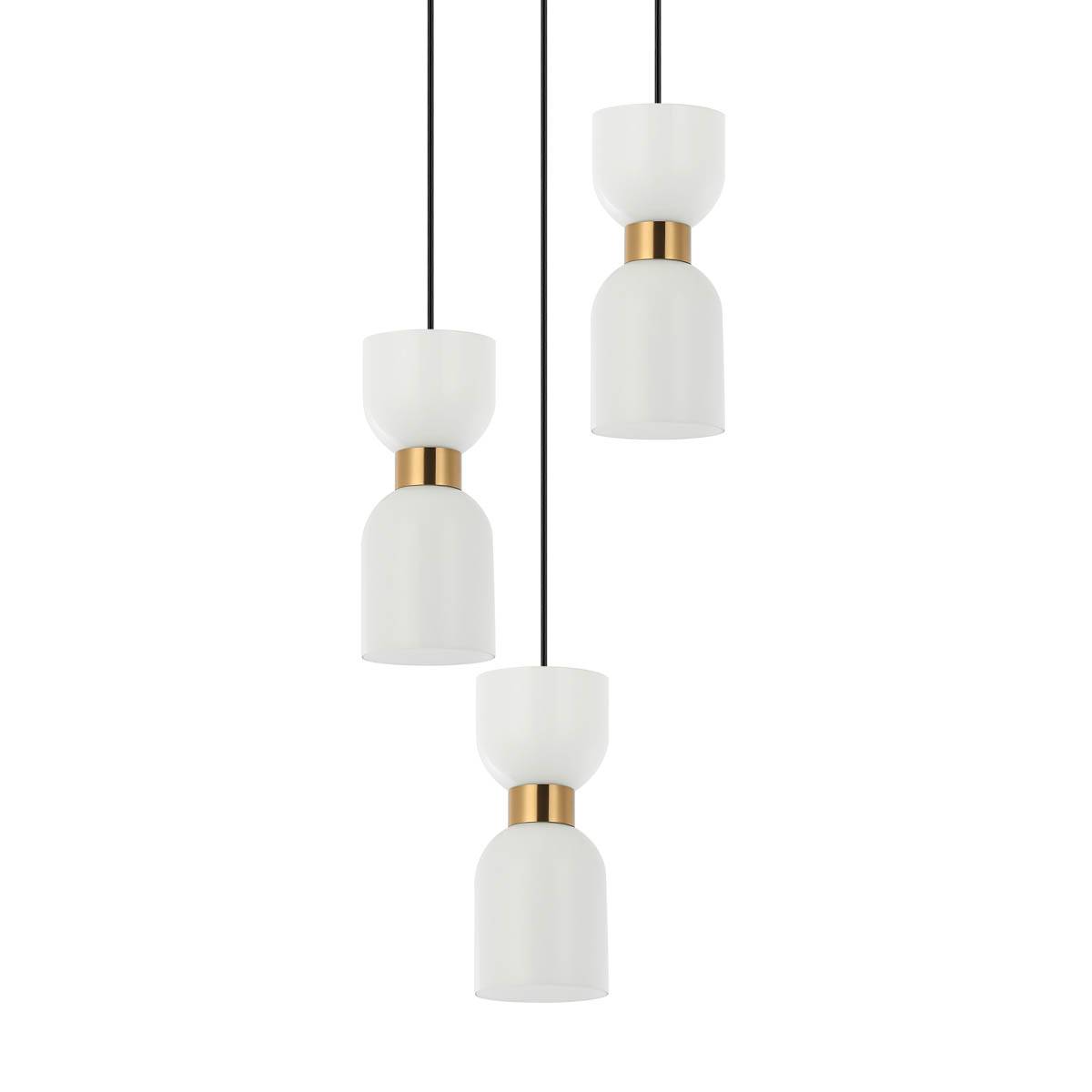 Lampa wisząca Monza od renomowanej marki Italux to wyjątkowy przykład nowoczesnego oświetlenia, które w elegancki sposób łączy funkcję użytkową z dekoracyjną. Jej starannie zaprojektowana forma przyciąga wzrok wysmakowaną estetyką i subtelnym kontrastem kolorystycznym, który wprowadza do wnętrza harmonię, ciepło i wyrafinowaną elegancję. Trzy źródła światła zawieszone na okrągłej, czarnej podsufitce prezentują się niezwykle lekko, tworząc dynamiczną kompozycję o zróżnicowanej wysokości. Efekt ten dodaje lampie przestrzennego wyrazu i sprawia, że staje się ona interesującym punktem centralnym w aranżacji wnętrza. Głównym atutem lampy Monza są charakterystyczne, podwójne klosze w kształcie odwróconych walców, przypominających formą klepsydrę. Wykonane z mlecznobiałego szkła o satynowym wykończeniu, subtelnie rozpraszają światło, gwarantując przyjemną i nastrojową iluminację. Łączenia pomiędzy szklanymi elementami wykończone są eleganckimi tulejkami w kolorze szczotkowanego mosiądzu, które wnoszą do projektu odrobinę klasycznego uroku i dodają mu wyrafinowania. Cała konstrukcja oprawy spoczywa na trzech cienkich przewodach, które doskonale korespondują z minimalistyczną formą i geometrycznym charakterem lampy. Okrągła podsufitka w matowej czerni pełni nie tylko funkcję montażową, ale też dopełnia kompozycję, tworząc równowagę między wszystkimi elementami wizualnymi. Kontrast między matową czernią a ciepłym, złocistym odcieniem mosiądzu oraz mleczną bielą szkła czyni tę oprawę ponadczasową – z łatwością wpisuje się w stylistykę modern classic, art déco, soft loft czy eleganckiego minimalizmu. Monza to propozycja idealna nad stół jadalniany, do kuchni z wyspą, salonu czy przestronnego holu. Dzięki możliwości regulacji długości zawieszenia, dopasujesz ją do wysokości pomieszczenia oraz indywidualnych potrzeb aranżacyjnych. Lampa przystosowana jest do trzech źródeł światła z trzonkiem E27, co daje szerokie możliwości personalizacji – możesz dobrać żarówki o preferowanej mocy i temperaturze barwowej, uzyskując światło idealne do pracy, wypoczynku lub budowania nastroju. Możliwość zastosowania żarówek LED pozwala również obniżyć zużycie energii i wydłużyć czas bezobsługowej pracy. Wysoka jakość materiałów – hartowanego szkła, stali lakierowanej oraz elementów mosiężnych – gwarantuje trwałość, odporność na uszkodzenia i łatwość w utrzymaniu czystości. Italux, jako doświadczony producent, oferuje na ten model 2-letnią gwarancję, co potwierdza rzetelność wykonania i dbałość o szczegóły. Monza to lampa, która zachwyca nie tylko światłem, ale też formą – przemyślana, nowoczesna, a jednocześnie ciepła i przyjazna wizualnie. Idealna dla osób poszukujących stylowego oświetlenia, które podkreśli charakter wnętrza i wniesie do niego nutę luksusu.