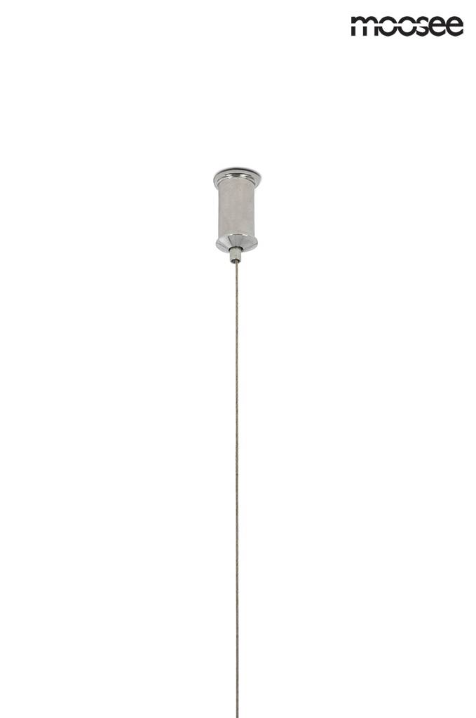 Całość została zawieszona na podsufitce w kolorze złotym, czarnym przewodzie i stalowych linkach.