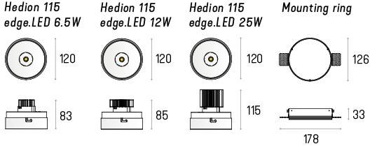Oprawa wpuszczana Hedion 115 edge.LED 25W 4.2646 Labra różne kolory