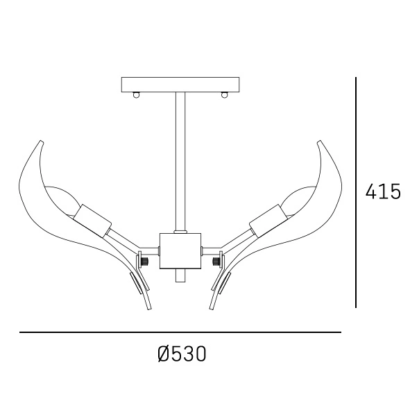 Złote wykończenie detali dodaje całości luksusowego charakteru. Metalowe elementy zostały zaprojektowane z dbałością o proporcje i estetykę – ich smukłość i lekkość pięknie komponują się z organiczną formą szklanych płatków. Dzięki swojej przysufitowej konstrukcji plafon doskonale sprawdzi się w pomieszczeniach z ograniczoną wysokością – nie dominuje przestrzeni, a mimo to pełni rolę dekoracyjnego akcentu.