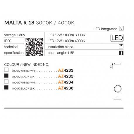 Plafon MALTA R 18 AZ4236 oprawa w kolorze czarnym AZzardo