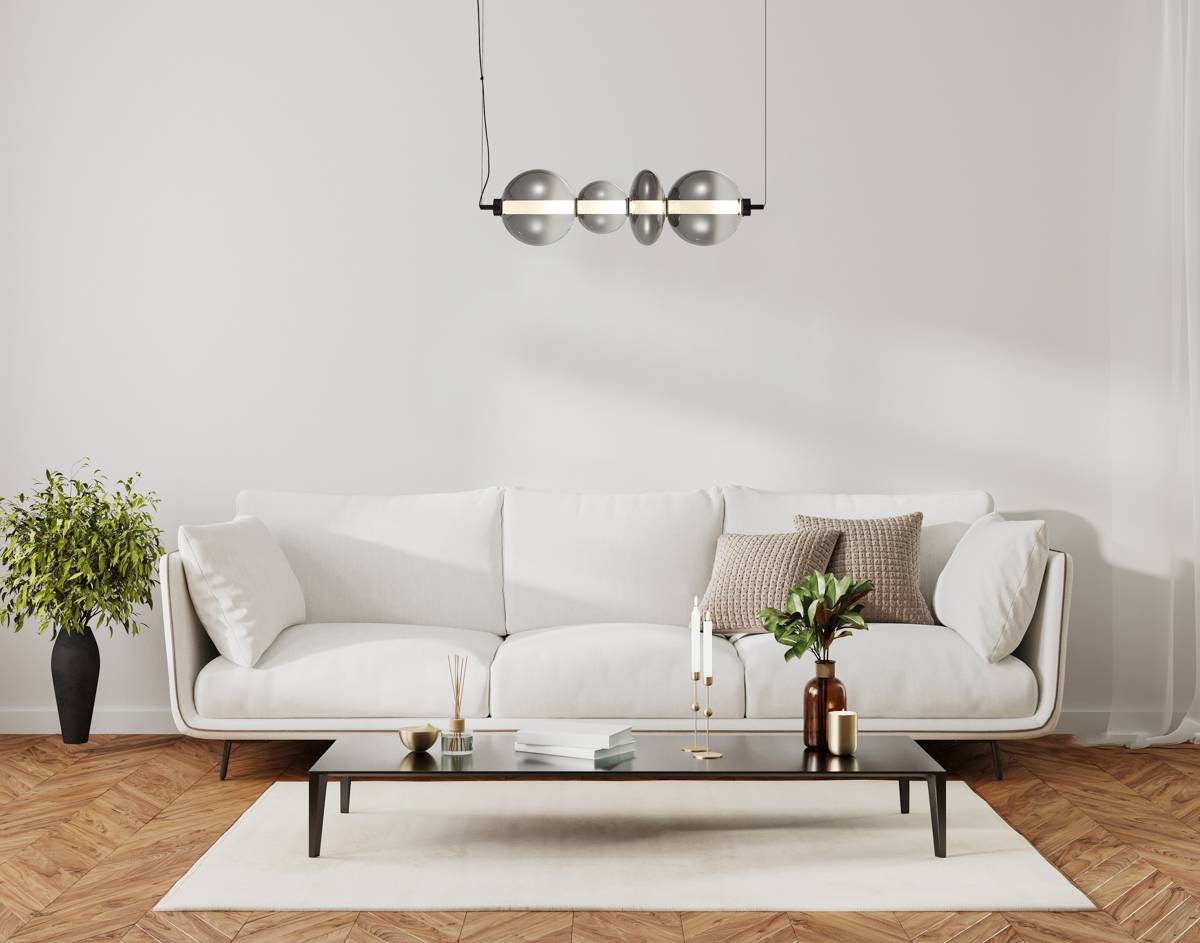 Lampa wisząca Sonte marki Italux to odważne i nowoczesne spojrzenie na współczesne oświetlenie dekoracyjne. Jej niezwykle efektowna forma przyciąga uwagę już od pierwszego spojrzenia, a przemyślane zestawienie materiałów i kolorów nadaje jej wyjątkowego charakteru. Oprawa utrzymana jest w odcieniu czerni, który stanowi eleganckie i ponadczasowe tło dla czterech szklanych elementów o różnej średnicy i wykończeniu. Dymione szkło, z którego wykonano kuliste klosze, zachwyca subtelnym połyskiem, które zmienia się w zależności od kąta padania światła. Wnętrze lampy skrywa wbudowany moduł LED, który emituje przyjemne, równomierne światło, doskonale rozproszone przez mlecznobiały dyfuzor osadzony w centrum całej kompozycji. Zastosowanie zintegrowanej technologii LED zapewnia energooszczędność oraz bardzo długą żywotność bez konieczności wymiany źródeł światła. Lampa Sonte została zawieszona na cienkim, regulowanym przewodzie oraz prawie niewidocznej lince, dzięki czemu można dopasować do wysokości pomieszczenia, przez co z łatwością wpisuje się zarówno w niskie, jak i wysokie przestrzenie. Metalowa podsufitka w kolorze czarnym estetycznie ukrywa elementy montażowe i podkreśla nowoczesny charakter całego projektu. Doskonale sprawdzi się jako główne źródło światła nad stołem w jadalni, wyspą kuchenną lub w centralnym punkcie salonu. Może też pełnić funkcję dekoracyjnego oświetlenia w sypialni, przedpokoju czy w eleganckim biurze. Lampa Sonte to nie tylko funkcjonalność, ale też wyrafinowany styl. Jej trójwymiarowa, rytmiczna forma oparta na poziomej osi sprawia wrażenie lekkości i architektonicznego porządku. Transparentne, dymione klosze częściowo odsłaniają wnętrze lampy, nadając jej zmysłowej tajemniczości i głębi. Wnętrze każdego z elementów emituje przytulne, lekko ciepłe światło, które nie męczy wzroku i tworzy sprzyjający odpoczynkowi klimat. Ciepło-biała barwa światła doskonale oddaje kolory otoczenia i buduje poczucie komfortu w każdej aranżacji. Zastosowanie wysokiej jakości materiałów, takich jak szkło i metal, gwarantuje trwałość oraz łatwość pielęgnacji. Lampa spełni oczekiwania nawet najbardziej wymagających użytkowników, którzy poszukują oryginalnego oświetlenia będącego nie tylko funkcjonalnym, ale też estetycznym elementem wnętrza. To propozycja dla osób, które cenią wyważone proporcje, precyzję wykonania i nietuzinkowy design. Model Sonte idealnie współgra z nowoczesnym minimalizmem, loftem, aranżacjami glamour i wnętrzami inspirowanymi stylem art déco. Niezależnie od tego, gdzie ją zawiesisz, będzie przyciągać spojrzenia i budować wyjątkową atmosferę.