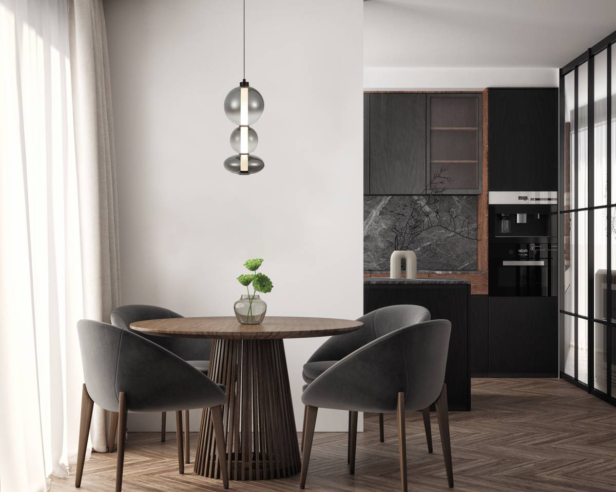 Lampa wisząca Sonte marki Italux to odważne i nowoczesne spojrzenie na współczesne oświetlenie dekoracyjne. Jej niezwykle efektowna forma przyciąga uwagę już od pierwszego spojrzenia, a przemyślane zestawienie materiałów i kolorów nadaje jej wyjątkowego charakteru. Oprawa utrzymana jest w głębokiej czerni, która stanowi eleganckie i ponadczasowe tło dla trzech szklanych elementów o różnej średnicy i wykończeniu. Dymione szkło, z którego wykonano kuliste klosze, zachwyca subtelnym połyskiem i tajemniczą głębią, która zmienia się w zależności od kąta padania światła. Wnętrze lampy skrywa wbudowany moduł LED, który emituje przyjemne, równomierne światło, doskonale rozproszone przez mlecznobiały dyfuzor osadzony w centrum całej kompozycji. Zastosowanie zintegrowanej technologii LED zapewnia energooszczędność oraz bardzo długą żywotność bez konieczności wymiany źródeł światła. Lampa Sonte została zawieszona na cienkim, regulowanym przewodzie, który można dopasować do wysokości pomieszczenia, dzięki czemu z łatwością wpisuje się zarówno w niskie, jak i wysokie przestrzenie. Metalowa podsufitka w kolorze czarnym estetycznie ukrywa elementy montażowe i podkreśla nowoczesny charakter całego projektu. Doskonale sprawdzi się jako główne źródło światła nad stołem w jadalni, wyspą kuchenną lub w centralnym punkcie salonu. Może też pełnić funkcję dekoracyjnego oświetlenia w sypialni, przedpokoju czy w eleganckim biurze. Lampa Sonte to nie tylko funkcjonalność, ale też wyrafinowany styl. Jej trójwymiarowa, rytmiczna forma oparta na pionowej osi sprawia wrażenie lekkości i architektonicznego porządku. Transparentne, dymione klosze częściowo odsłaniają wnętrze lampy, nadając jej zmysłowej tajemniczości i głębi. Wnętrze każdego z elementów emituje przytulne, lekko ciepłe światło, które nie męczy wzroku i tworzy sprzyjający odpoczynkowi klimat. Ciepło-biała barwa światła doskonale oddaje kolory otoczenia i buduje poczucie komfortu w każdej aranżacji. Zastosowanie wysokiej jakości materiałów, takich jak szkło i metal, gwarantuje trwałość oraz łatwość pielęgnacji. Lampa spełni oczekiwania nawet najbardziej wymagających użytkowników, którzy poszukują oryginalnego oświetlenia będącego nie tylko funkcjonalnym, ale też estetycznym elementem wnętrza. To propozycja dla osób, które cenią wyważone proporcje, precyzję wykonania i nietuzinkowy design. Model Sonte idealnie współgra z nowoczesnym minimalizmem, loftem, aranżacjami glamour i wnętrzami inspirowanymi stylem art déco. Niezależnie od tego, gdzie ją zawiesisz, będzie przyciągać spojrzenia i budować wyjątkową atmosferę.