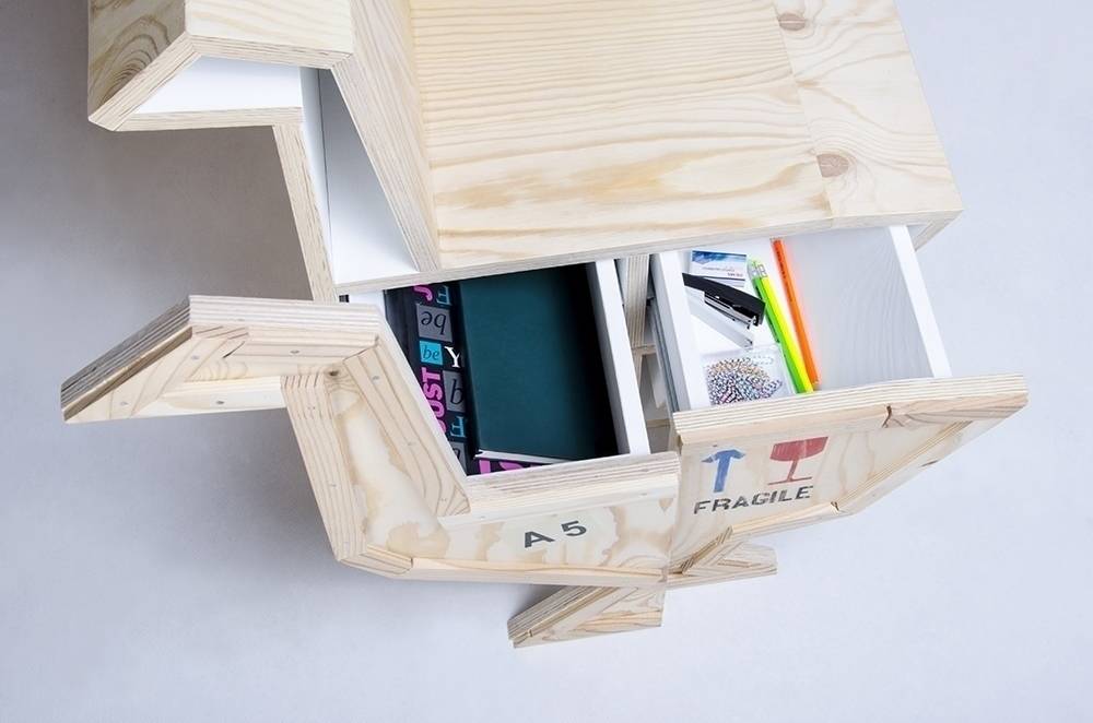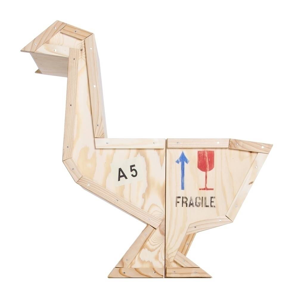 Szafka w kształcie gęsi wykonana w całości ze sklejki drewnianej.