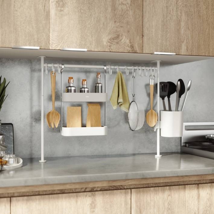 Posiada regulację długości, więc dopasujemy go naszej kuchni. Dzięki temu doskonałemu organizerowi w twojej kuchni już nigdy nie będzie bałaganu, a każdy przybór będzie zawsze w zasięgu reki.