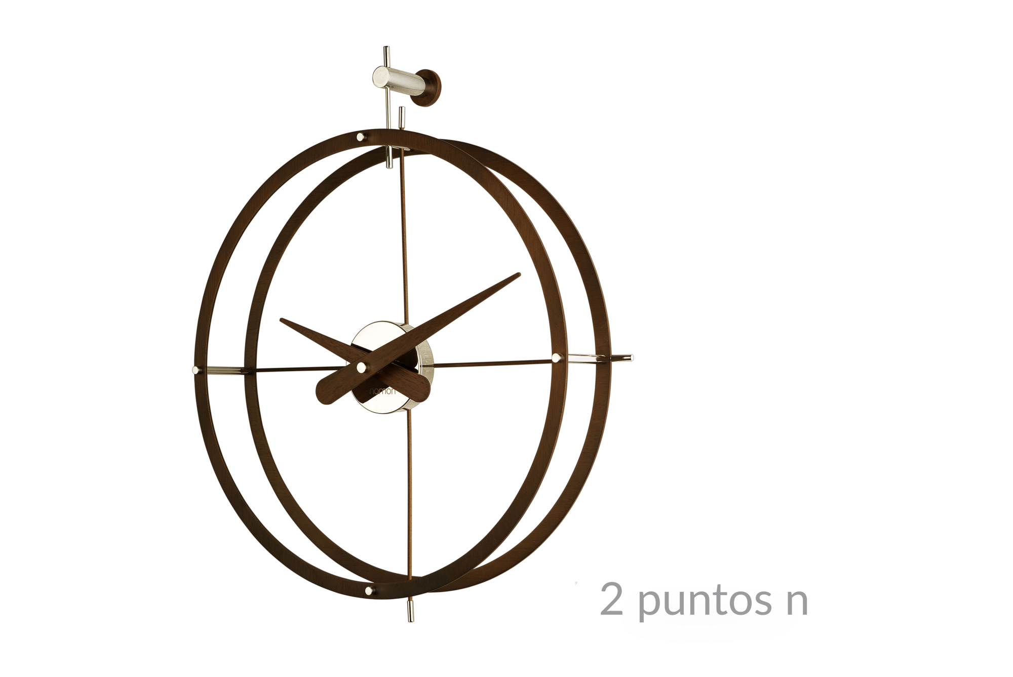 Zegar ścienny 2 PUNTOS N to elegancki i designerski zegar produkowany przez firmę NOMON, hiszpańskiego producenta zegarów o międzynarodowej renomie. 2 PUNTOS N charakteryzuje się połączeniem obudowy i dodatków w kolorze chromowanego mosiądzu i drewna wenge. Jest to niezwykle elegancki dodatek, który wpasuje się zarówno w klasyczne jak i nowoczesne wnętrza.