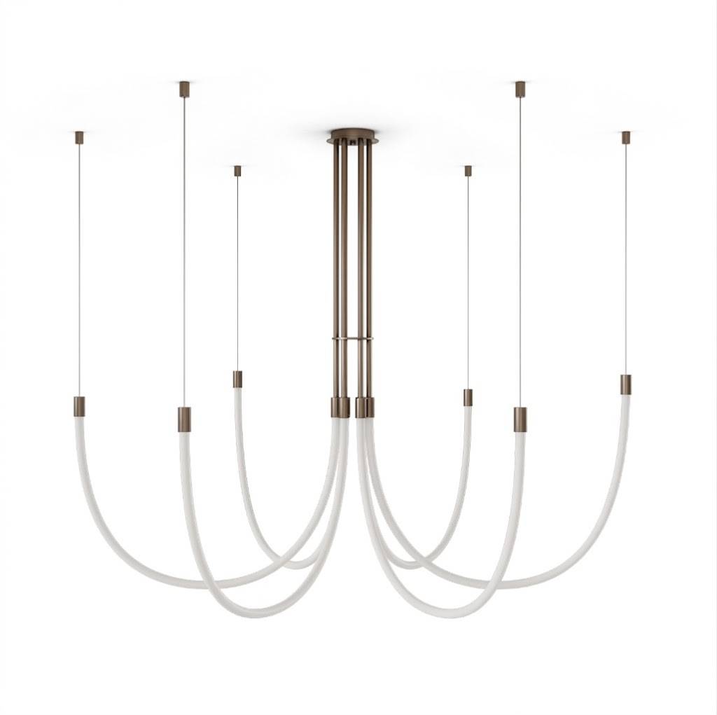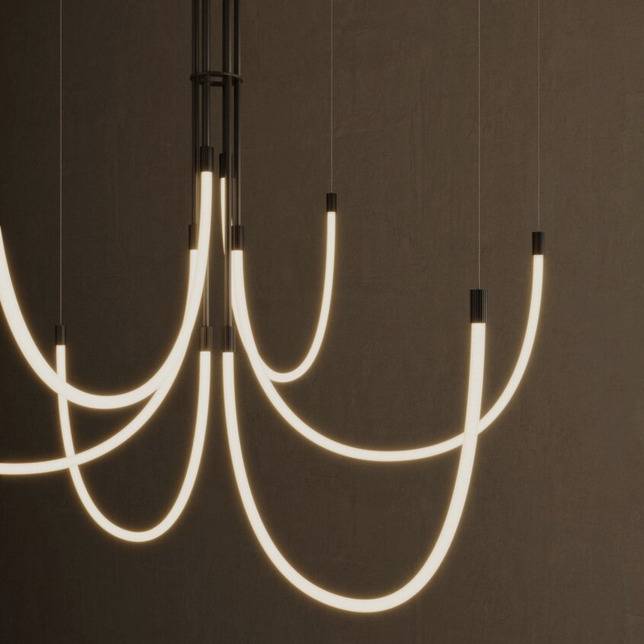 Żyrandol CRAM marki Aromas to nowoczesna interpretacja klasycznej formy oświetlenia centralnego, w której elegancja spotyka się z odważnym podejściem do projektowania. To model, który przyciąga uwagę nie poprzez nadmiar detali, lecz poprzez świadome operowanie linią, rytmem i przestrzenią. Konstrukcja opiera się na centralnym punkcie montażowym, z którego wyprowadzono sześć ramion w formie miękko opadających łuków. Ich płynna, niemal rzeźbiarska linia nadaje całej bryle lekkości i dynamiki, tworząc wrażenie ruchu zatrzymanego w czasie. Każde z ramion zakończone jest subtelnym źródłem światła, co pozwala na równomierne rozproszenie iluminacji w całym pomieszczeniu. To, co wyróżnia model CRAM, to jego wyjątkowa gra napięcia między konstrukcją a swobodą. Z jednej strony mamy wyraźny, uporządkowany punkt centralny, z drugiej – organicznie opadające ramiona, które wprowadzają do wnętrza miękkość i nieformalny charakter. Efekt? Lampa, która doskonale balansuje pomiędzy geometrią a naturalnością. Żyrandol został zaprojektowany z myślą o przestrzeniach, które potrzebują wyrazistego, ale nieprzytłaczającego akcentu. Świetnie odnajdzie się nad stołem w jadalni, w przestronnym salonie, a także w reprezentacyjnych wnętrzach komercyjnych. Jego forma sprawia, że nie tylko oświetla przestrzeń, ale również ją definiuje, nadając jej charakter i głębię. Dzięki zastosowaniu kilku punktów świetlnych, CRAM oferuje funkcjonalne i komfortowe oświetlenie, które sprawdza się zarówno podczas codziennych czynności, jak i w bardziej nastrojowych aranżacjach. Światło rozkłada się równomiernie, eliminując ostre kontrasty i tworząc przyjemną atmosferę. Nie można pominąć również aspektu aranżacyjnego. Ten model doskonale komponuje się z wnętrzami nowoczesnymi, minimalistycznymi, a także tymi inspirowanymi stylem soft loft czy contemporary. Jego forma jest na tyle uniwersalna, że z łatwością wpisuje się w różne koncepcje projektowe, jednocześnie zachowując swoją unikalną tożsamość. CRAM to żyrandol dla tych, którzy szukają czegoś więcej niż tylko źródła światła. To świadomy wybór designu, który nie krzyczy, ale mówi wyraźnie – o dobrym guście, wyczuciu formy i zamiłowaniu do nowoczesnej estetyki.