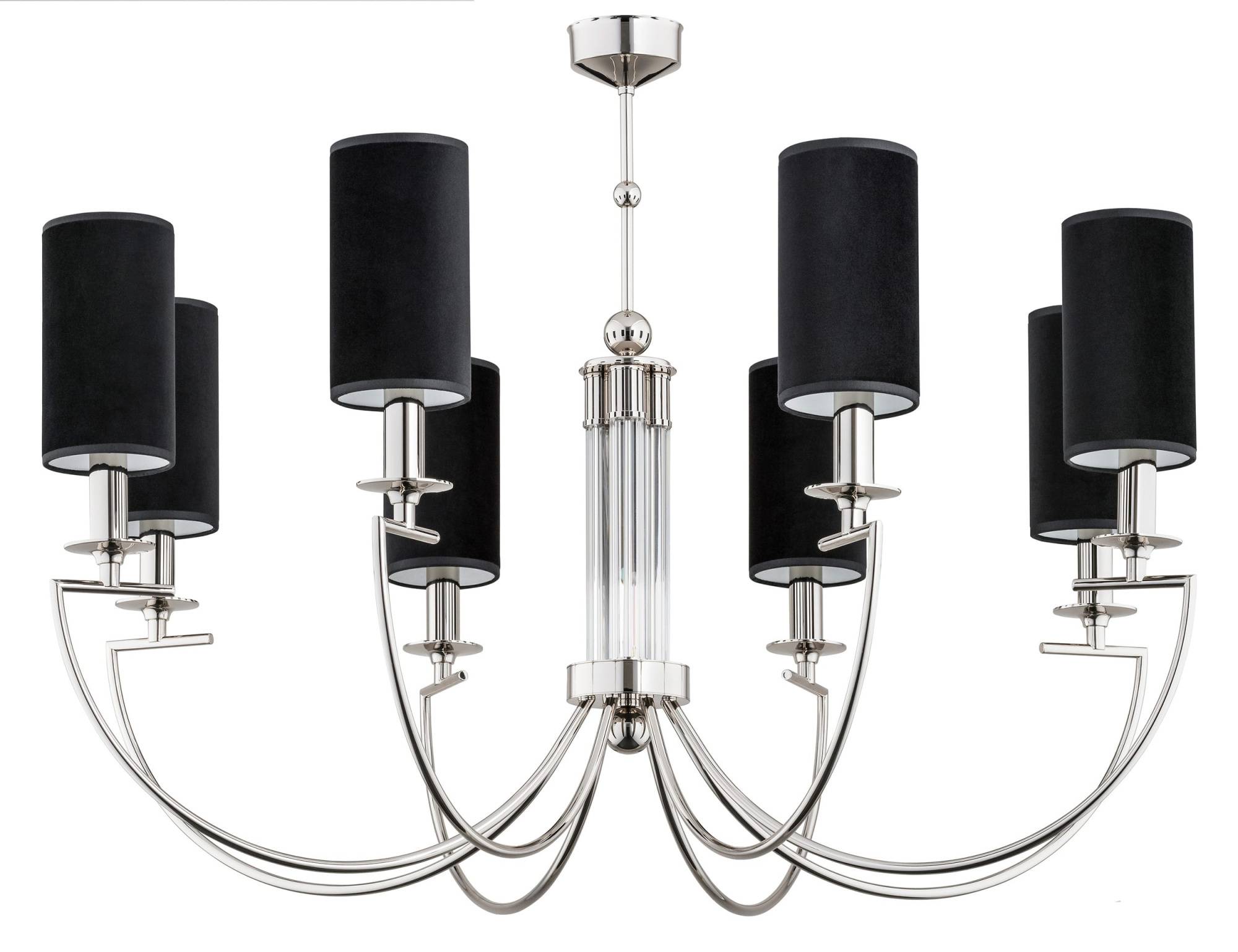 Żyrandol LEA marki KUTEK to elegancka, czteroramienna kompozycja, w której klasyczna forma została wzbogacona o subtelny, dekoracyjny detal. To oprawa stworzona do wnętrz reprezentacyjnych – salonów, jadalni, przestronnych sypialni czy stylowych apartamentów – gdzie oświetlenie ma nie tylko rozjaśniać przestrzeń, ale również definiować jej charakter. Konstrukcja żyrandola opiera się na smukłym zawiesiu zakończonym kulistymi akcentami, które nadają całej bryle miękkości i płynności. Centralna część oprawy została uzupełniona pionowym elementem z ryflowanego szkła. Pionowe żłobienia subtelnie załamują światło, wprowadzając do kompozycji efekt głębi oraz delikatnych refleksów. Ten detal stanowi wyrafinowany punkt dekoracyjny, który przyciąga wzrok i podkreśla jakość wykonania. Z korpusu wyprowadzono osiem ramion o łagodnie wygiętej linii. Ich kształt buduje wrażenie lekkości i eleganckiego ruchu, dzięki czemu żyrandol nie sprawia wrażenia ciężkiego mimo swojej wyraźnej obecności w przestrzeni. Każde ramię zakończone jest klasycznym, cylindrycznym abażurem wykonanym z wysokiej jakości tkaniny. Forma abażurów wprowadza wizualny spokój i równowagę wobec dekoracyjnego trzonu. Zastosowanie ośmiu punktów świetlnych pozwala uzyskać równomierne, rozproszone oświetlenie, które doskonale sprawdza się w codziennym użytkowaniu. Światło filtrowane przez abażury jest miękkie i przyjemne dla oka, sprzyjając budowaniu kameralnej, komfortowej atmosfery. Model LEA harmonijnie łączy klasyczne inspiracje z nowoczesną precyzją wykonania. Gładkie powierzchnie metalu kontrastują ze strukturą szkła i miękkością tkaniny, tworząc wielowymiarową, lecz spójną kompozycję. Każdy element został zaprojektowany z dbałością o proporcje, dzięki czemu całość prezentuje się elegancko i ponadczasowo. Żyrandol doskonale wpisuje się w stylistykę modern classic, eleganckie wnętrza apartamentowe oraz aranżacje inspirowane subtelną estetyką art déco. Może stanowić centralny punkt salonu, efektowne oświetlenie nad stołem w jadalni lub wyrafinowany akcent w przestrzeni hotelowej. Model LEA to propozycja dla osób, które poszukują oprawy o wyważonej formie, wysokiej jakości wykonania i wyraźnym, lecz nienarzucającym się charakterze. To żyrandol, który łączy funkcjonalność z dekoracyjnością, tworząc oświetlenie z klasą i trwałą wartością estetyczną.