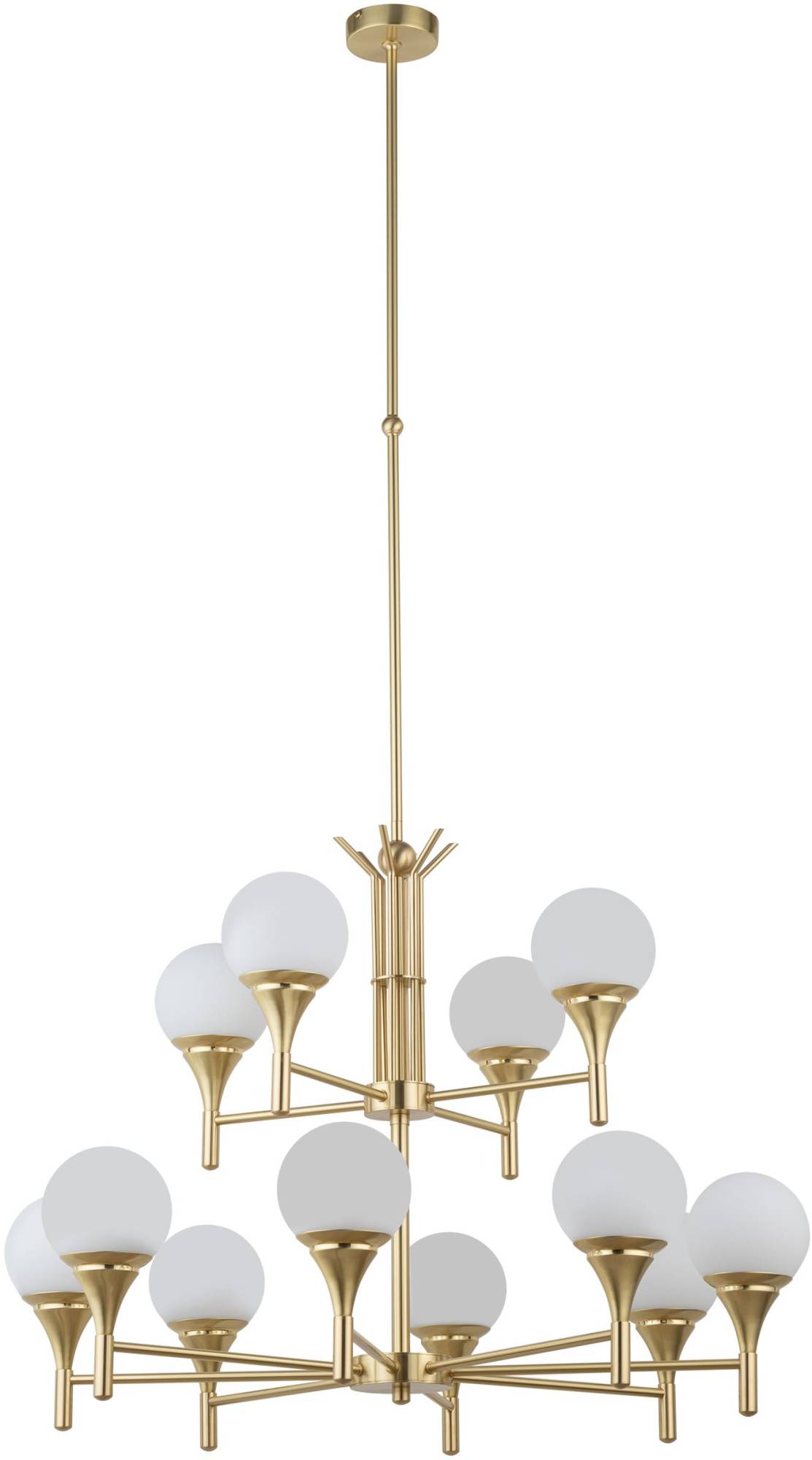 Żyrandol MELEZE marki KUTEK to spektakularna, dwupoziomowa kompozycja o wyrazistym, architektonicznym charakterze. To model zaprojektowany z myślą o przestrzeniach reprezentacyjnych, w których oświetlenie ma nie tylko rozjaśniać wnętrze, lecz także budować jego tożsamość i podkreślać prestiżowy charakter aranżacji. Konstrukcja opiera się na smukłym, długim zawiesiu zakończonym dekoracyjnym detalem w postaci subtelnego przewężenia oraz kulistego akcentu. Pionowa linia prowadzi wzrok ku centralnej, ażurowej strukturze, stanowiącej znak rozpoznawczy kolekcji MELEZE. Zespół równoległych prętów tworzy elegancką kolumnę, której forma przywodzi na myśl nowoczesną interpretację klasycznej architektury. Ten element nadaje całej bryle wrażenie lekkości i precyzji. Model wyróżnia się rozbudowaną, dwupoziomową konstrukcją ramion. Górny poziom obejmuje cztery punkty świetlne rozmieszczone symetrycznie wokół centralnego trzonu. Dolny poziom składa się z ośmiu ramion, które rozchodzą się promieniście, tworząc efektowną, przestrzenną kompozycję. Takie rozwiązanie zapewnia równomierne doświetlenie dużych przestrzeni oraz nadaje żyrandolowi imponującej skali. Każde ramię zakończone jest smukłym wspornikiem i rozszerzającą się ku górze formą kielicha, zwieńczoną kulistym kloszem. Gładka powierzchnia kloszy równomiernie rozprasza światło, tworząc miękką, przyjemną poświatę. Dwunastopunktowy układ źródeł światła sprawia, że żyrandol doskonale sprawdza się w wysokich salonach, przestronnych jadalniach, holach, klatkach schodowych czy eleganckich wnętrzach komercyjnych. Kompozycja ramion została zaprojektowana w sposób zapewniający pełną równowagę wizualną. Lekkość konstrukcji idzie w parze z jej solidnością, a proporcje zostały dopracowane tak, by całość prezentowała się harmonijnie z każdej perspektywy. Dwupoziomowa forma nadaje bryle głębi i trójwymiarowości, czyniąc z niej centralny punkt aranżacji. Połączenie gładkich powierzchni metalowych elementów z geometryczną strukturą centralnej części i kulistymi kloszami tworzy kompozycję o wysokiej kulturze estetycznej. Każdy detal – od wyważenia ramion po precyzyjne wykończenie elementów konstrukcyjnych – świadczy o jakości wykonania charakterystycznej dla marki KUTEK. Żyrandol MELEZE idealnie wpisuje się w stylistykę modern classic, wnętrza inspirowane art déco oraz aranżacje o subtelnie luksusowym charakterze. To oprawa dla osób, które cenią spektakularne formy, lecz oczekują jednocześnie elegancji i ponadczasowości. Model MEL-ZW-8+4 to propozycja dla wymagających klientów poszukujących oświetlenia, które stanie się sercem wnętrza. To żyrandol, który buduje atmosferę, podkreśla skalę przestrzeni i nadaje jej wyrafinowany, reprezentacyjny charakter.