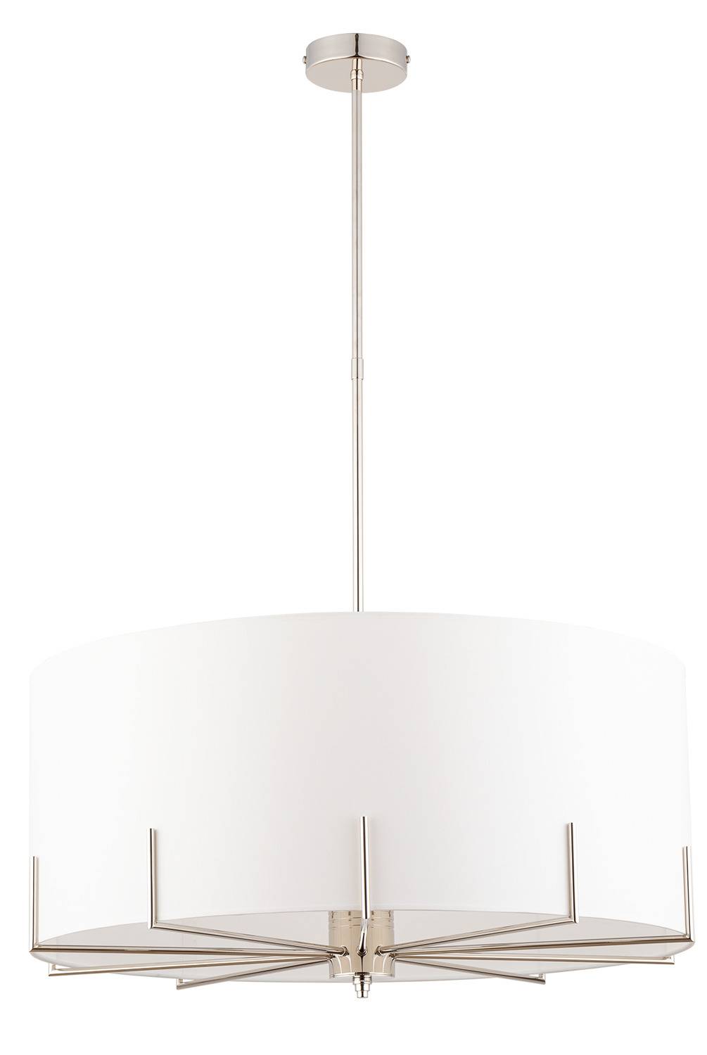Delikatne, jasne abażury wykonane z tkaniny subtelnie rozpraszają światło, dzięki czemu wnętrze zyskuje miękkie, przytulne oświetlenie, które nie oślepia, ale buduje atmosferę komfortu i relaksu. Z kolei metalowy korpus w satynowym, lekko przygaszonym wykończeniu nadaje konstrukcji nowoczesnego sznytu i sprawia, że żyrandol świetnie odnajduje się zarówno we wnętrzach klasycznych, jak i tych inspirowanych stylem nowojorskim czy modern classic. To lampa, która doskonale prezentuje się nad dużym stołem w jadalni, w przestronnym salonie czy holu, stając się nie tylko źródłem światła, ale także ważnym elementem aranżacyjnym.
