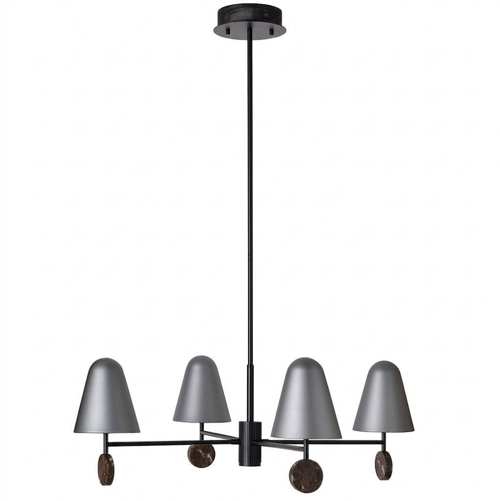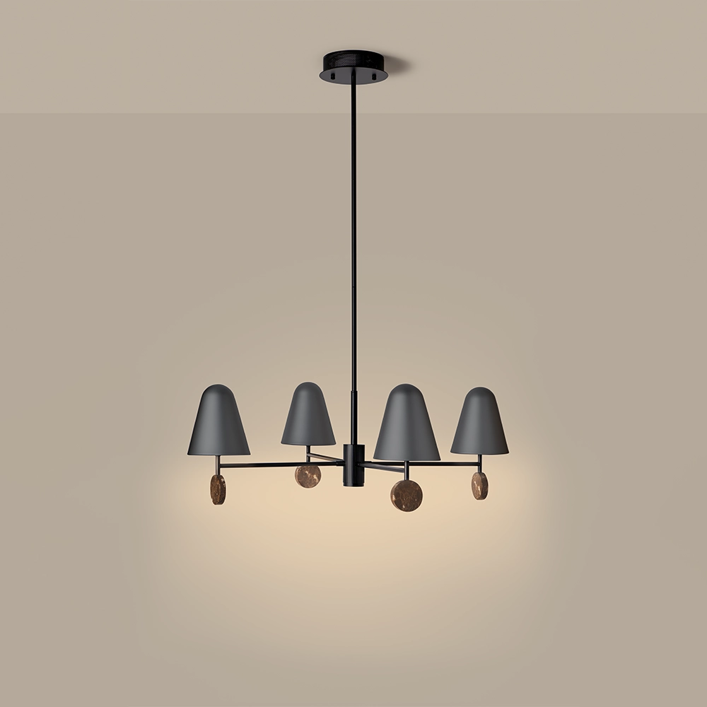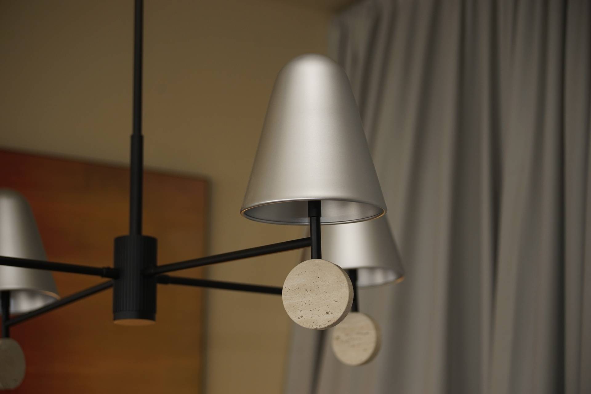 Żyrandol STOR marki Aromas to wyrazisty przykład nowoczesnego designu, w którym funkcjonalność spotyka się z odważną, ale doskonale wyważoną estetyką. To model zaprojektowany z myślą o wnętrzach, które potrzebują mocnego akcentu – nie krzykliwego, lecz świadomego i dopracowanego w każdym detalu. Konstrukcja opiera się na centralnym trzonie, od którego promieniście rozchodzą się ramiona zakończone kloszami o charakterystycznej, lekko rozszerzającej się ku dołowi formie. Ten układ wprowadza do przestrzeni równowagę i symetrię, jednocześnie nadając lampie dynamiczny charakter. Każdy z kloszy pełni rolę niezależnego punktu świetlnego, co pozwala na równomierne oświetlenie większej powierzchni. Światło emitowane przez żyrandol jest skierowane w dół, co czyni go doskonałym wyborem do oświetlenia stołu w jadalni, wyspy kuchennej lub centralnej części salonu. Jednocześnie konstrukcja kloszy sprawia, że światło nie jest ostre, lecz przyjemnie ukierunkowane i komfortowe w odbiorze. Ciekawym elementem projektu są dekoracyjne detale umieszczone przy ramionach lampy. Wprowadzają one subtelną różnorodność form i przełamują geometryczną prostotę całej konstrukcji. To właśnie takie akcenty nadają żyrandolowi indywidualny charakter i sprawiają, że nie jest on jedynie funkcjonalnym źródłem światła, lecz również elementem dekoracyjnym o wyraźnej tożsamości. Zawieszenie lampy zostało zaprojektowane w sposób minimalistyczny, dzięki czemu całość zachowuje lekkość wizualną. Smukły przewód prowadzi wzrok w dół, kierując uwagę bezpośrednio na główną część konstrukcji. To rozwiązanie sprawia, że żyrandol dobrze prezentuje się zarówno w wysokich, jak i standardowych pomieszczeniach. STOR doskonale odnajduje się w nowoczesnych aranżacjach, szczególnie tych inspirowanych stylem industrialnym, minimalistycznym czy modernistycznym. Jednocześnie jego wyważona forma pozwala na zastosowanie również w bardziej eklektycznych wnętrzach, gdzie stanie się ciekawym kontrapunktem dla innych elementów wyposażenia. To propozycja dla osób, które cenią design oparty na prostocie, ale z wyraźnym akcentem charakteru. Żyrandol nie dominuje przestrzeni swoją masą, lecz przyciąga uwagę formą i proporcjami. Można powiedzieć, że STOR to światło zaprojektowane z myślą o równowadze – między estetyką a funkcją, między minimalizmem a wyrazistością.