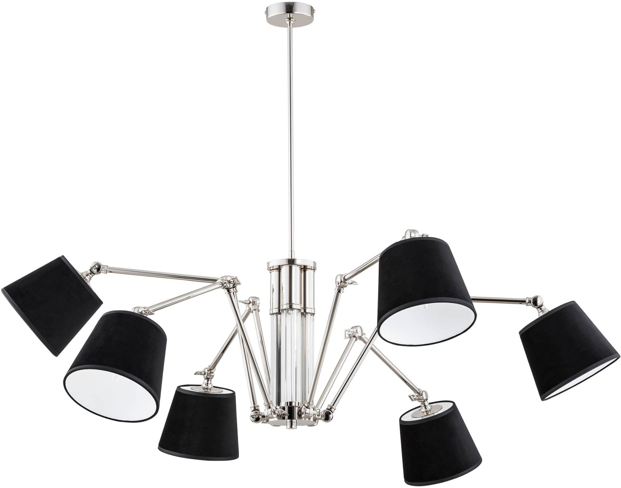 Żyrandol TADEA marki KUTEK to efektowna oprawa oświetleniowa o nowoczesnej, dynamicznej formie, która łączy elegancję z funkcjonalnością. Jego charakterystyczna konstrukcja oparta na rozbudowanym układzie ramion sprawia, że lampa staje się centralnym punktem aranżacji wnętrza, przyciągając uwagę swoją formą oraz starannie dopracowanymi detalami. To propozycja dla osób poszukujących oświetlenia, które oprócz funkcji praktycznej pełni także rolę dekoracyjnej rzeźby świetlnej. Centralną część konstrukcji stanowi elegancki korpus, który został wzbogacony o dekoracyjny element o pionowej strukturze. Transparentna forma tego elementu nadaje lampie lekkości wizualnej oraz wprowadza subtelny efekt dekoracyjny. Ten detal podkreśla wyrafinowany charakter oprawy i stanowi interesujący akcent stylistyczny w całej konstrukcji. Od centralnego korpusu rozchodzą się liczne ramiona tworzące dynamiczną, symetryczną kompozycję. Ich konstrukcja oparta została na systemie przegubów, które umożliwiają regulację ustawienia poszczególnych elementów. Dzięki temu użytkownik może dostosować położenie kloszy, zmieniając zarówno ich kąt nachylenia, jak i kierunek padania światła. Takie rozwiązanie pozwala nie tylko dopasować lampę do indywidualnych potrzeb oświetleniowych, ale również nadać jej nieco odmienny charakter wizualny w zależności od ustawienia ramion. Przeguby zostały zaprojektowane w sposób zapewniający stabilność konstrukcji oraz wygodę regulacji, co znacząco zwiększa funkcjonalność całej oprawy. Na końcach ramion umieszczono sześć kloszy o klasycznej, cylindrycznej formie. Ich kształt umożliwia skierowanie światła w dół oraz na boki, dzięki czemu pomieszczenie zostaje równomiernie oświetlone. Jednocześnie konstrukcja kloszy pozwala uzyskać miękkie, przyjemne światło, które sprzyja budowaniu komfortowej atmosfery we wnętrzu. Każdy z kloszy osadzony jest na ruchomej oprawie, co dodatkowo zwiększa możliwości regulacji kierunku światła. Dzięki temu żyrandol może pełnić zarówno funkcję oświetlenia ogólnego, jak i bardziej punktowego, skierowanego na wybrane strefy pomieszczenia. Konstrukcja lampy została zawieszona na smukłym, prostym ramieniu połączonym z rozetą sufitową. Ten element zachowuje minimalistyczną formę, dzięki czemu nie odciąga uwagi od rozbudowanej kompozycji ramion i kloszy. Starannie zaprojektowana rozeta stanowi eleganckie wykończenie konstrukcji oraz estetyczne połączenie lampy z powierzchnią sufitu. Żyrandol TADEA emituje rozproszone, równomierne światło, które doskonale sprawdza się jako główne oświetlenie pomieszczenia. Dzięki sześciu punktom świetlnym oprawa skutecznie doświetla przestrzeń, jednocześnie tworząc przyjemny i elegancki klimat. Model ten doskonale sprawdzi się w salonie, jadalni, przestronnym gabinecie czy reprezentacyjnym holu. Może stanowić centralny element oświetlenia nad stołem, w strefie wypoczynkowej lub w przestrzeni otwartego salonu, gdzie jego dynamiczna forma będzie pełnić również funkcję dekoracyjną. Stylistyka lampy sprawia, że idealnie pasuje do wnętrz utrzymanych w stylu nowoczesnym, modern classic oraz eleganckich aranżacjach apartamentowych. Dzięki połączeniu klasycznych form kloszy z nowoczesną konstrukcją ramion oprawa harmonijnie łączy tradycję z nowoczesnością. Jak wszystkie oprawy oświetleniowe marki KUTEK, model TADEA został wykonany z najwyższą dbałością o detale. Precyzyjne wykończenie elementów konstrukcyjnych, starannie dopracowane przeguby oraz wysokiej jakości materiały gwarantują trwałość oraz estetykę na najwyższym poziomie. TADEA to propozycja dla osób poszukujących wyjątkowego oświetlenia o wyrazistym charakterze. Rozbudowana konstrukcja ramion, regulowane klosze oraz elegancki centralny korpus sprawiają, że żyrandol staje się nie tylko funkcjonalnym źródłem światła, lecz także efektownym elementem aranżacji wnętrza, który podkreśla jego styl i indywidualny charakter.